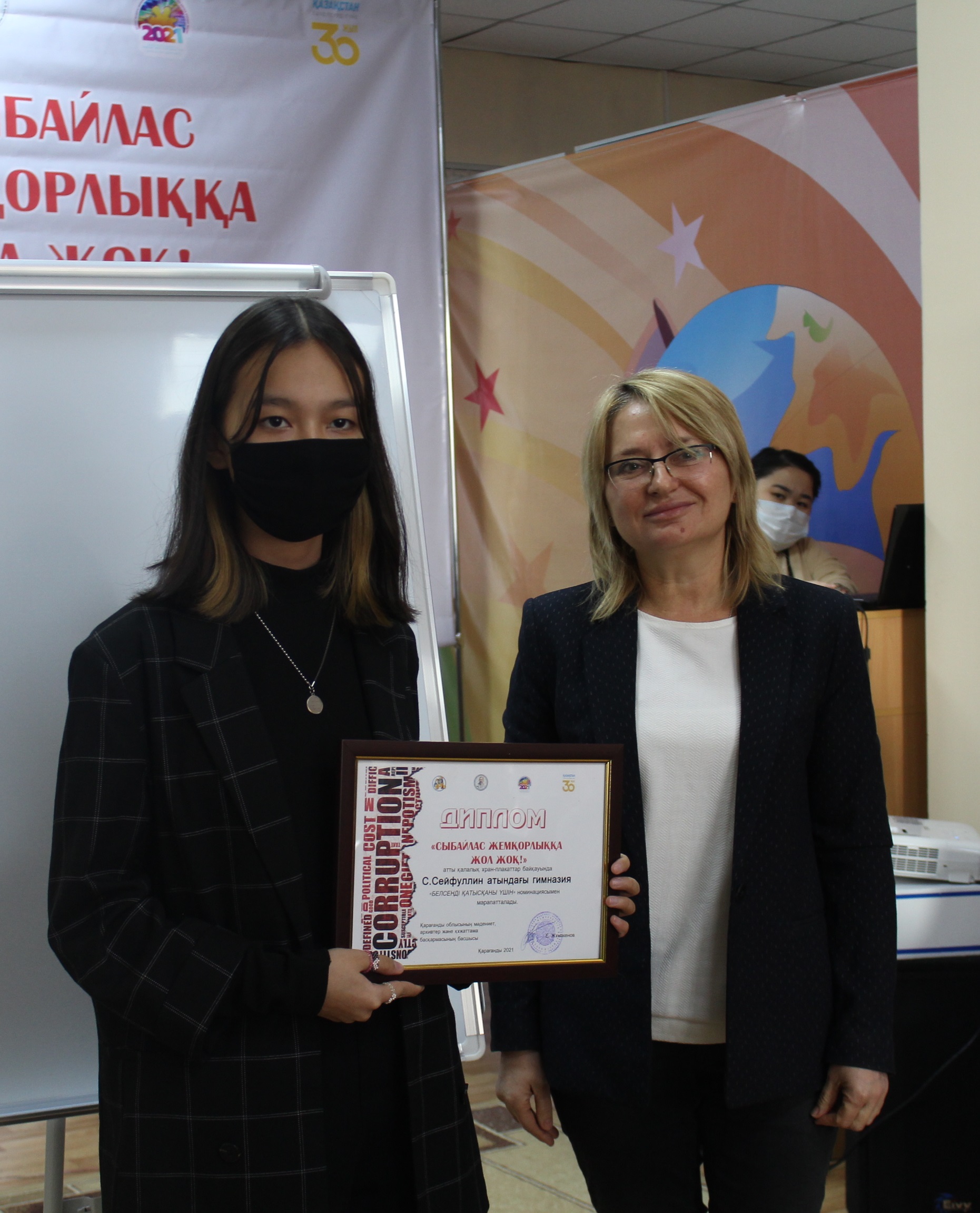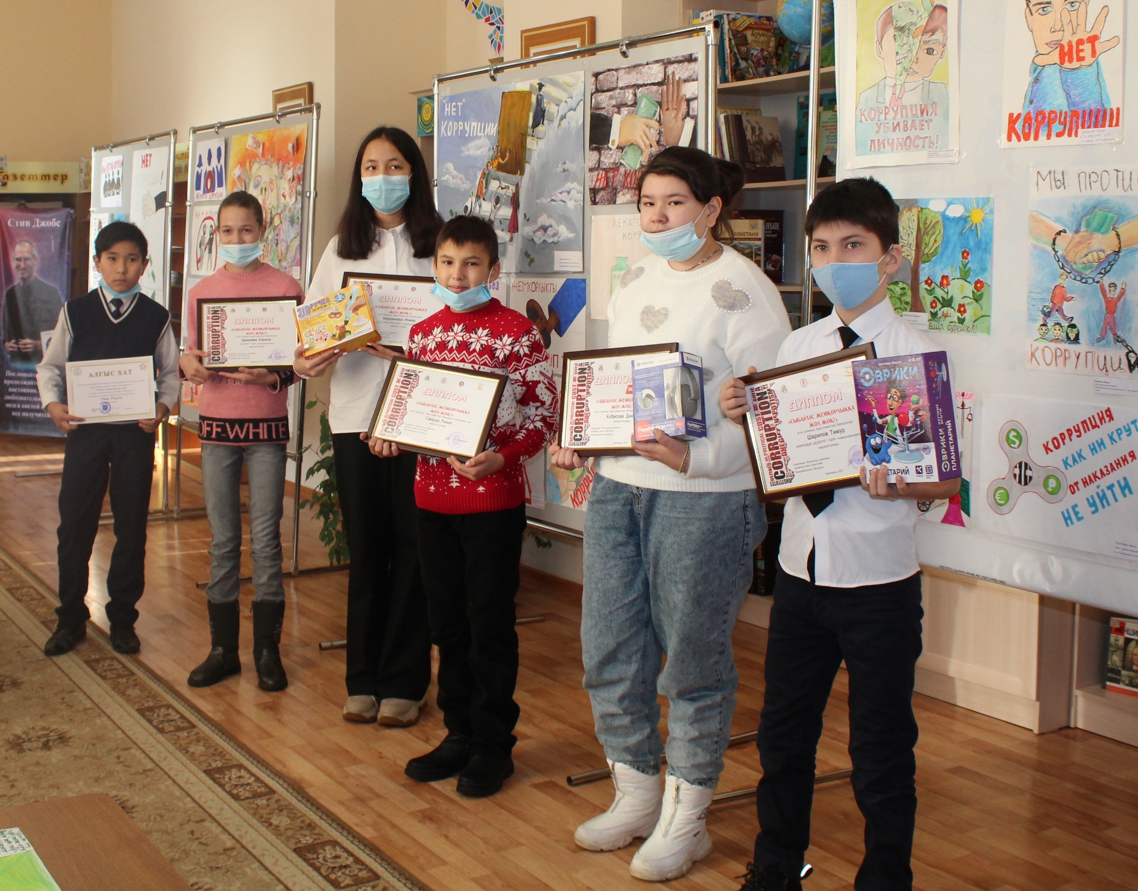 On December 8th , the award ceremony of the winners of the city poster-slogan contest «No Corruption!», was held at the Abai Children’s library dedicated to the International Anti-Corruption Day