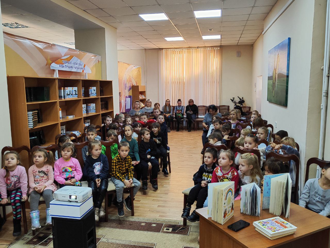 A friend and partner of our library, Natalia Inzhevskaya, presented to the children her new books “The Tulip of Happiness” and “The Adventures of the Donkey Zhaidar”, which open the series of books “Magic Tales of Saryarka”.