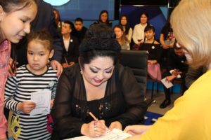 Makpal Zhunusova not only answered the children’s questions, but also sang. She performed the romance “And finally, I will say” from the film “Cruel Romance” and the song by the composer Bakir Tazhibaev “Aqbulaq”.