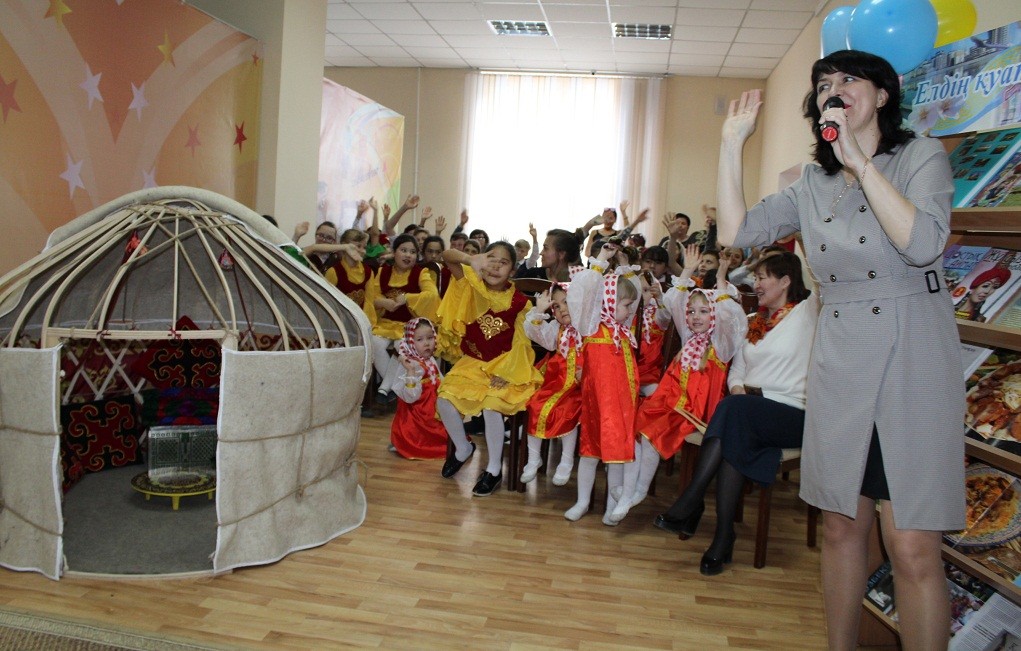 В преддверии Дня единства народа Казахстана 29 апреля в библиотеке состоялся телемост с Курганской областной детско-юношеской библиотекой им. В.Ф. Потанина (Россия) для учащихся 5-6 классов школ города и воспитанников детского дома «Таншолпан».