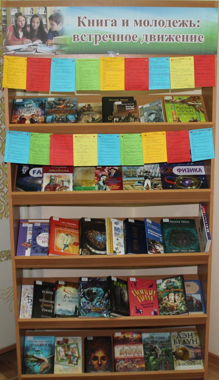 С целью ознакомления с интересами читателей на абонементе отдела обслуживания детей среднего и старшего школьного возраста (10-15 лет) в библиотеке оформлена выставка-опрос «Книга и молодежь: встречное движение», на которой представлены книги, наиболее спрашиваемые читателями и не входящие в школьную программу.