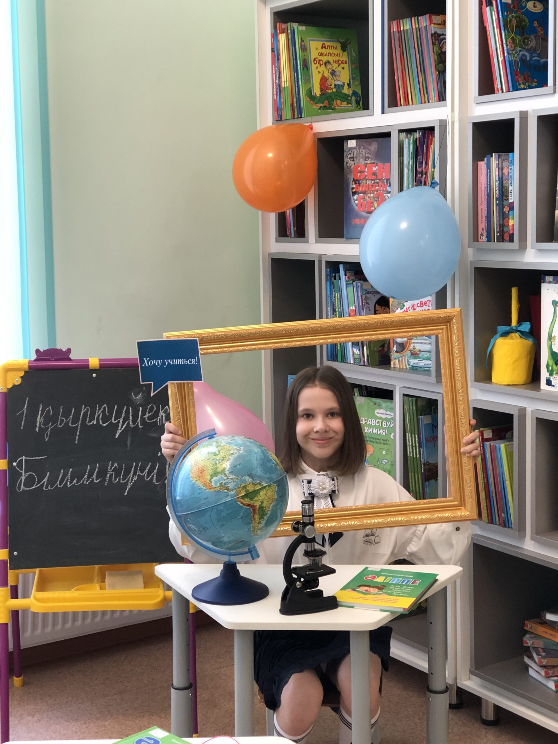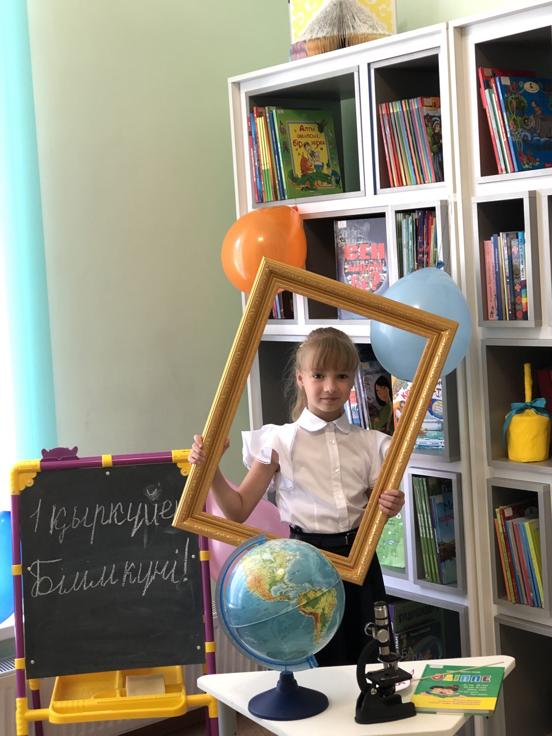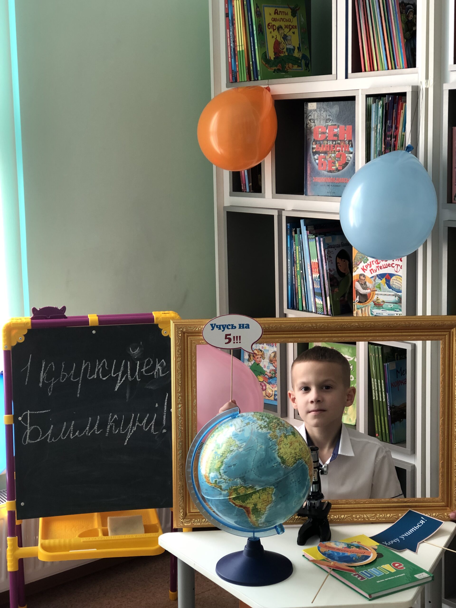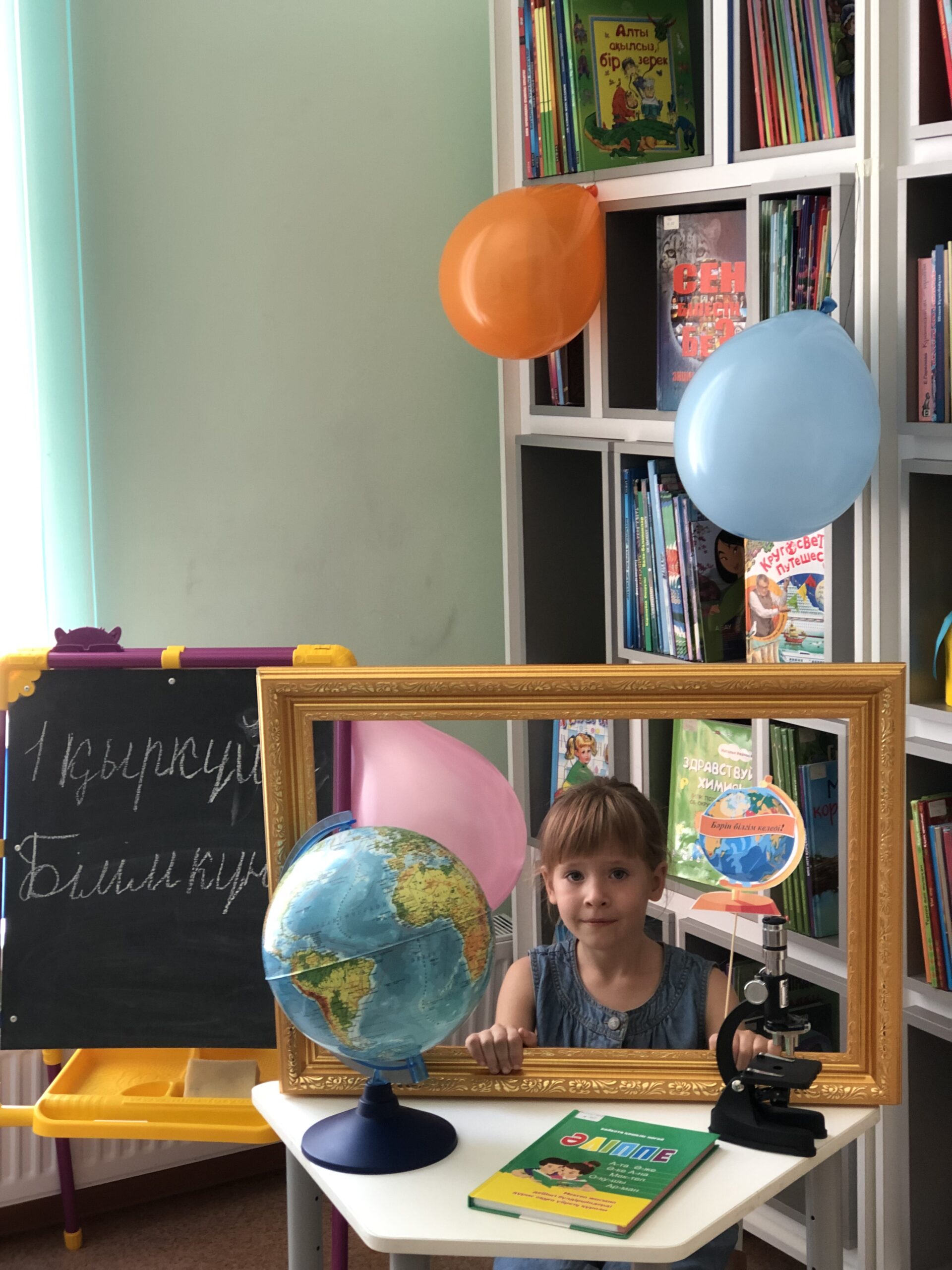 Кітапхана жас оқырмандарды және олардың ата-аналарын Білім күнімен құттықтай отырып, мереке күн ұзақ уақыт бойы есте қалуы үшін тақырыптық фотоаймақ дайындап өткізді.