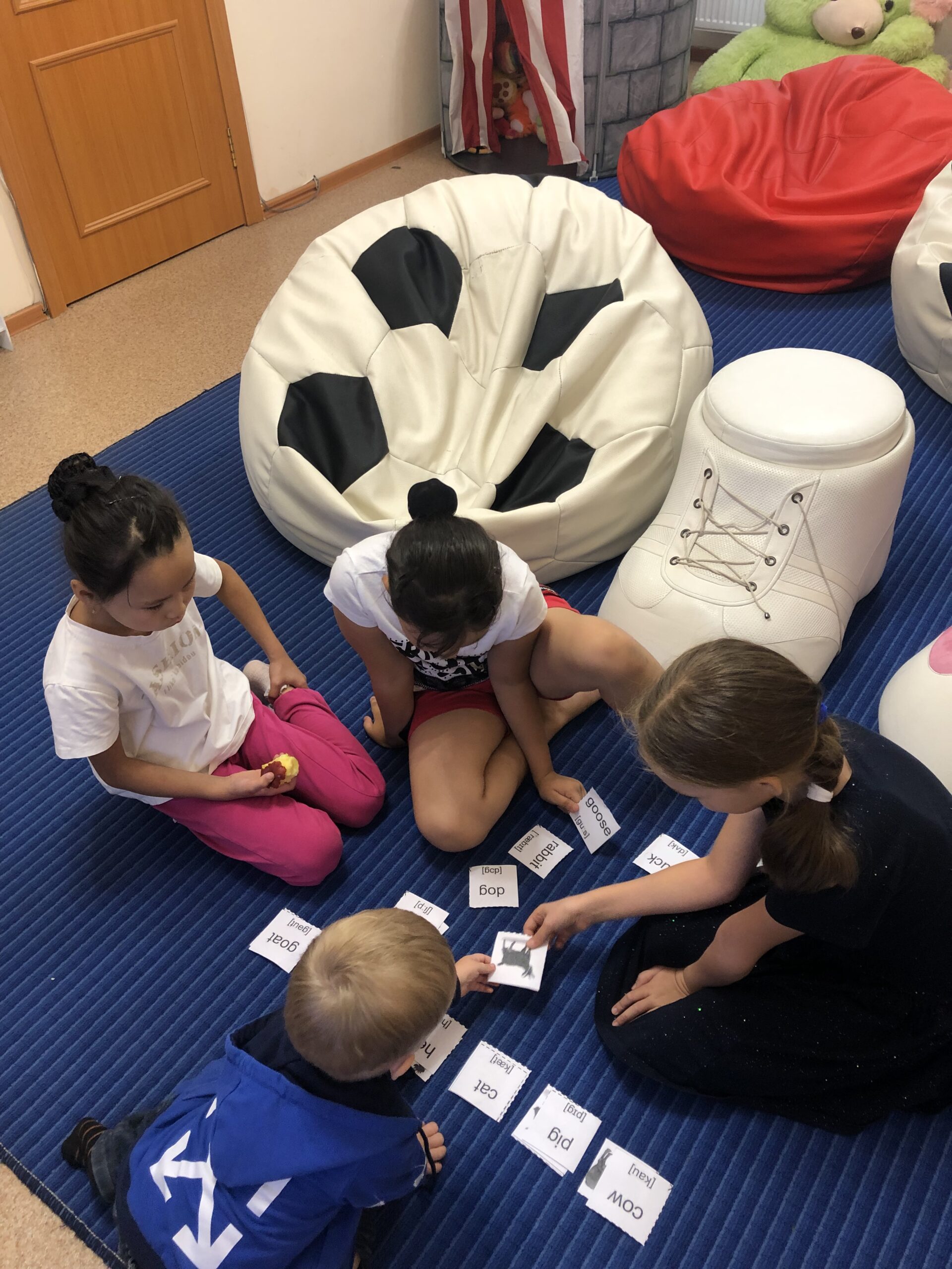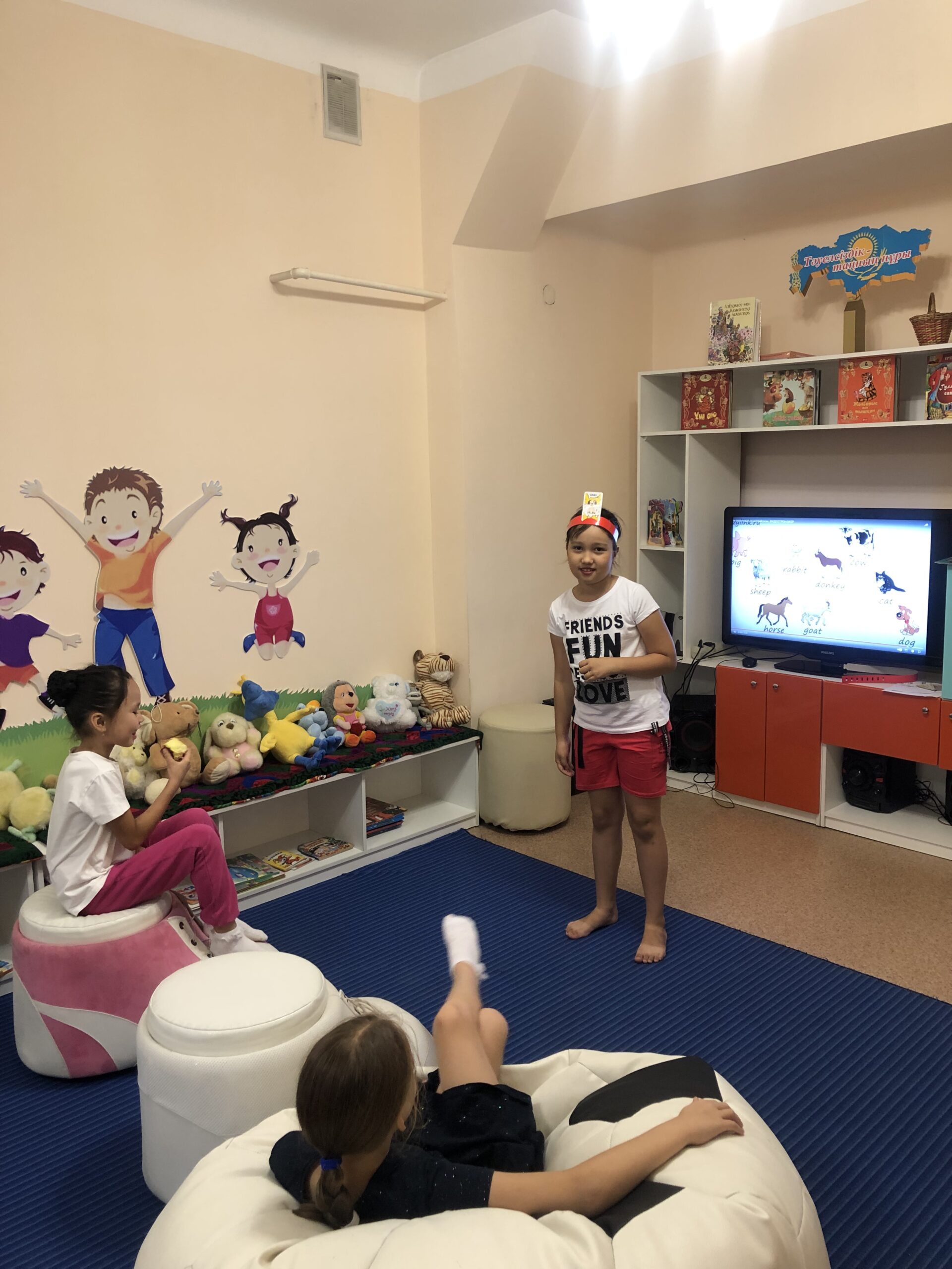 «Көңілді ағылшын» үйірмесінің кезекті сабағы «Үй жануарлары» тақырыбында өтті. Балалар «Мен кіммін?» қызықты ойынын ойнап, үй жануарлары бейнеленген суреттерді сөздермен сәйкестендіріп, ағылшын тіліндегі баламаларын жаттады.