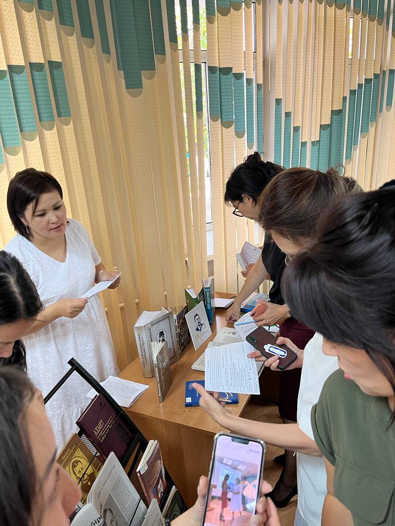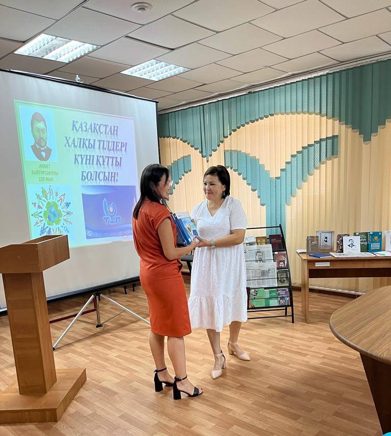 2 қыркүйек күні Абай атындағы балалар кітапханасының кітапханашысы П.Байболатова Қарағанды облысының Статистика департаментінде А. Байтұрсынұлының 150 жылдығына орай және Қазақстан халқы тілдерінің күніне арналған іс-шарада «А.Байтұрсынұлы – қазақ тілтану ғылымы» кітап көрмесіне шолу жасады. Шара барысында Статистика департамент мамандарының арасында «Тіл жанашыры» атты сайыс өткізілді.