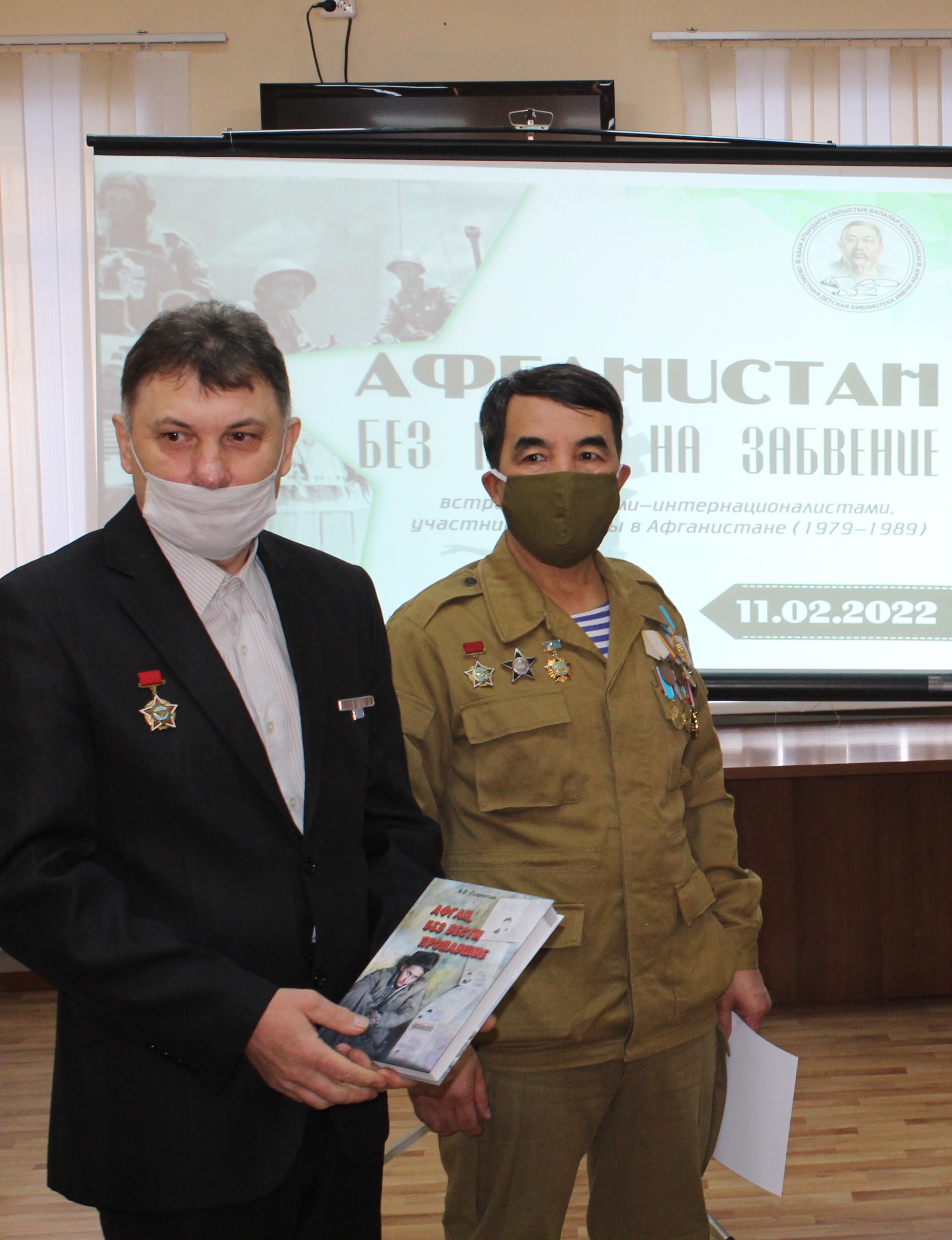Қонақтар мектеп оқушыларына соғысқа қалай келгендерін, кеңес жауынгер-интернационалистер интернационалдық борышын өтеу кезінде қандай адамгершілікке жатпайтын сынақтардан өткендері туралы айтып берді. Жас оқырмандар құрметті қонақтарға әдеби поэтикалық сыйлық әзірледі. Кездесу соңында И.Г.Молодов кітапхананың кітап қорына ауған майдандарында хабарсыз кеткен жауынгерлерді іздеуге арналған бірегей басылымды сыйға тартты.