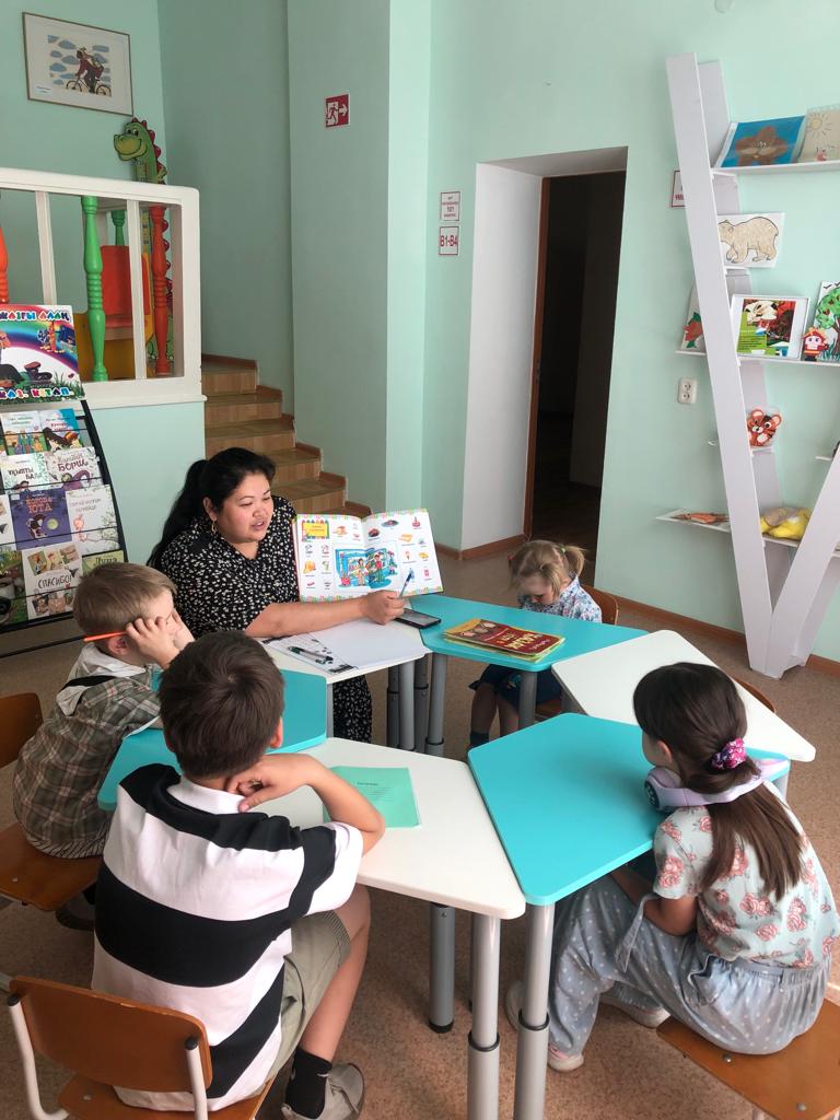 Кітапханада «Жаз. Балалар. Кітап» жоба аясында «Кітаппен өткен жаз қызық» атты әдеби аула  өткізілді. «Әдеби аула» – қарым-қатынасқа, оқуға, пікірталасқа, ойындарға және түрлі викториналарға арналған әмбебап кітапхана алаңы.