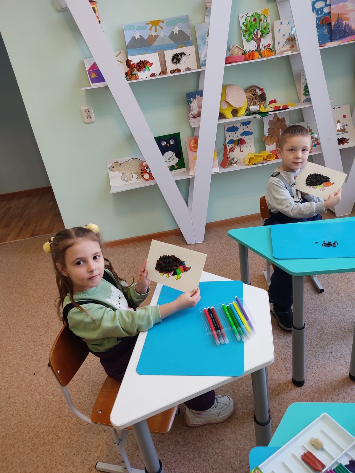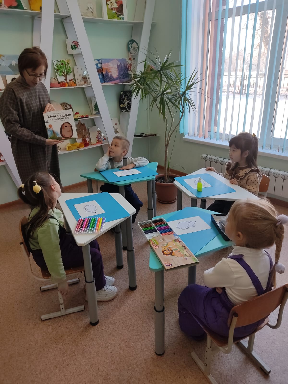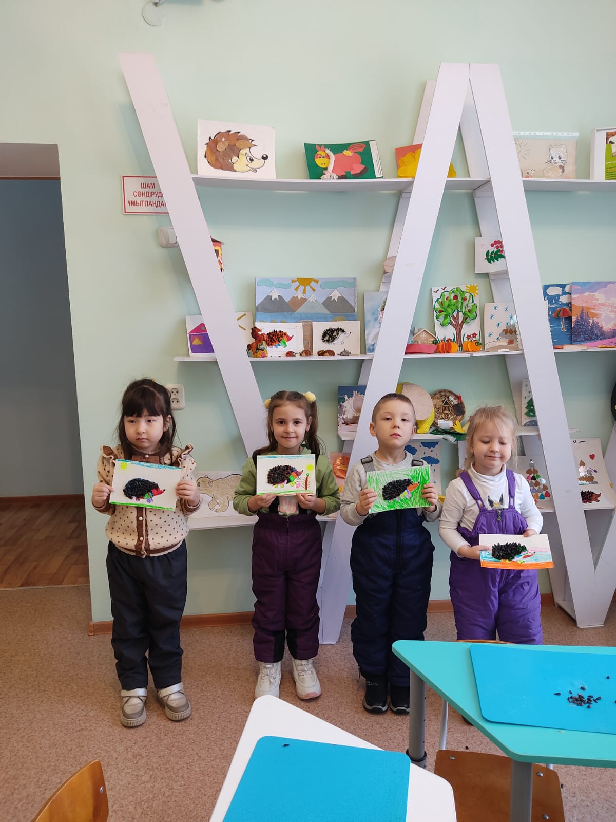 «Шуақ» шығармашылық студиясы өз жұмысын жалғастыруда. Бүгін балалар Өзге Нұр Құскіннің «Кірпі нинидің ең бақытты күні» ертегісі бойынша қолдағы бар материалдардан кірпі жасады.