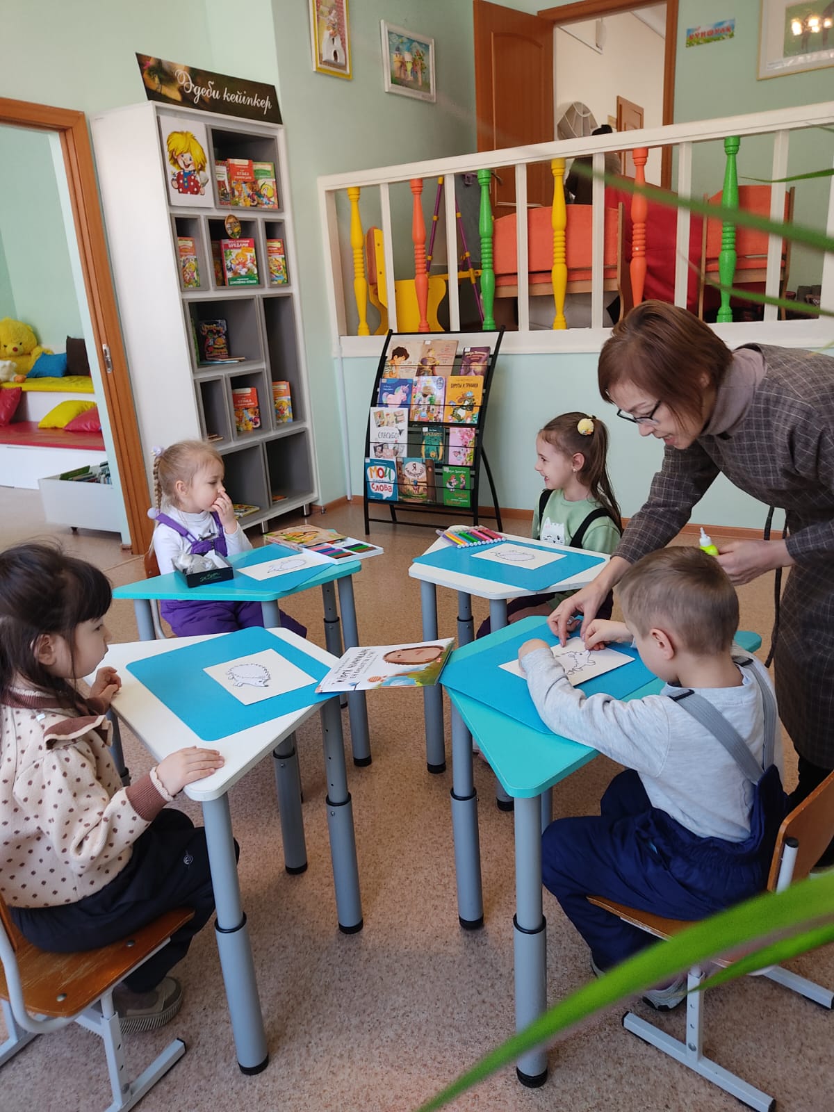 Балалар «Аруна» баспасынан шыққан «Суретті қазақ тілі» кітабын пайдалана отырып, балалар отбасы мүшелерінің яғни ата, әже, әке, ана, қазақша атауларын айтып үйренді. Сонымен қатар «Бұл кім» ойынын ойнады.