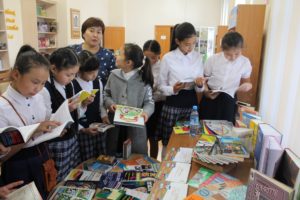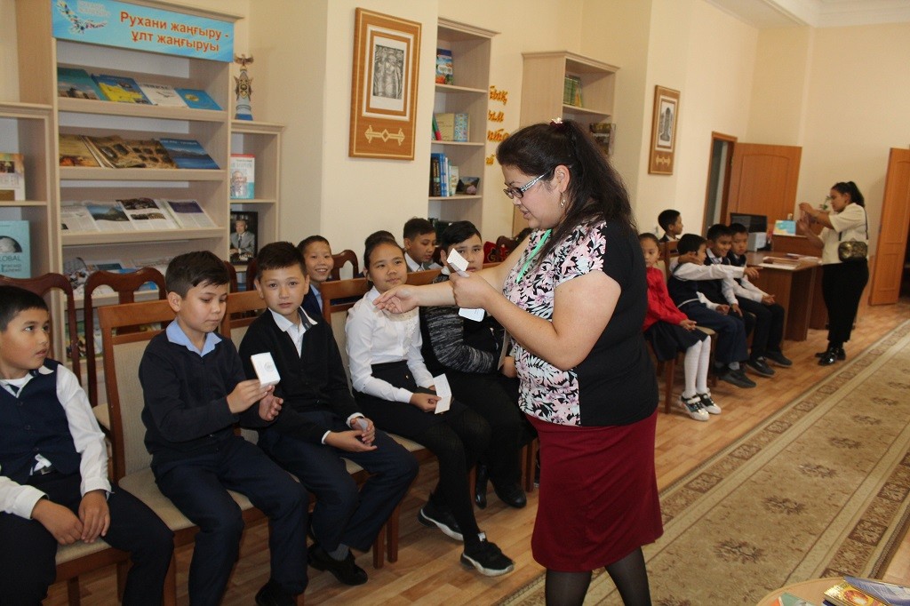 Кітапханашылар оқушыларға оқу залдарын көрсетіп саяхат өткізіп, кітапхананың кітап қорымен таныстырып, кітап көрмелеріне шолу жасады. Орта және жоғары сынып оқушыларына қызмет көрсету бөлімінің оқу залында 5 бөлімнен тұратын кітап көрмесі ұйымдастырылды: «Ұлтымыздың ұстазы – Ахмет Байтұрсынов», «Ана тілі – әр қазақтың айбыны!» , «Ұстаз мәртебесі-ұлт мұраты», «Мировые языки», «Бір ел – бір кітап».