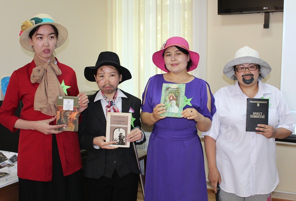 Жастар жылы аясында кітапханада 24 мамырда біздің қордағы шет елдік авторлардың кітаптарын жарнамалайтын «Бір кітаптың дефилесі» атты жас кітапханашыларға арналған байқау өткізілді. Біздің қызметкерлер А.К.Дойлдың «Записки о Шерлоке Холмсе», Э.Л.Войничтің «Овод», Д.Ф.Купердің «Последний из могикан», Д.Макдональдтің «Золотой ключ», Х.Муракамидің «Все божьи дети могут танцевать», Э.Хемингуэя «Старик и море», Ф.Бёрнеттің «Таинственный сад» шығармаларын ұсынды.