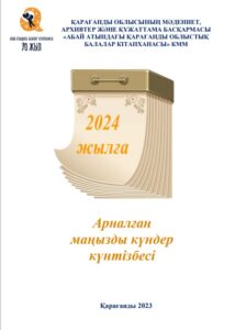 2024 жылға арналған маңызды күндер күнтізбесі [Мәтін] / құраст.: С. Жусупова. – Қарағанды: «Абай атындағы Қарағанды облыстық балалар кітапханасы» КММ, 2023. — 49 б.