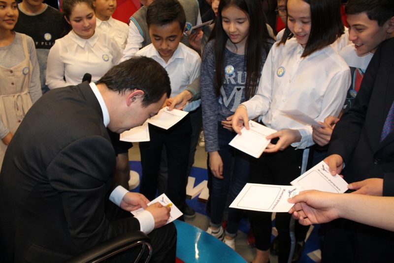 Диалог алаңында қазақ атын әлемге ғылым саласында жаңғыртып жүрген, физика пәнінен дүниежүзілік олимпиадаларда бірнеше рет жеңіске жетіп, әйгілі NASA-да жұмыс істеп, ғарышқа Space X секілді ұшу аппаратын жөнелтуге атсалысқан тәлімгер, «Қазақстанның 100 жаңа есімі» жобасының жеңімпазы «Астана» Халықаралық қаржы орталығы әкімшілігі» АҚ Басқарма Төрағасының орынбасары Ернұр Рысмағамбетов және қала гимназиялары мен лицейлерінің оқушылары (60-тан астам) кездесті.