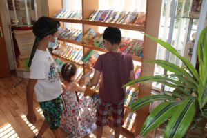 Экскурсия соңында үйде оқуға кітапты таңдап алып, жазылу үшін балаларды ата-аналарымен бірге кітапханаға қайта келуге шақырды.