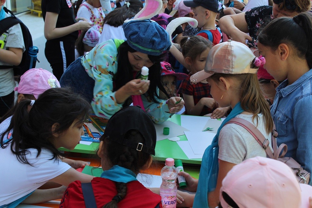 • «Алуан түсті шеберхана» балаларға асфальтта түрлі-түсті қарындаштармен сурет салып, барлық армандарын жүзеге асыруға көмектесті.