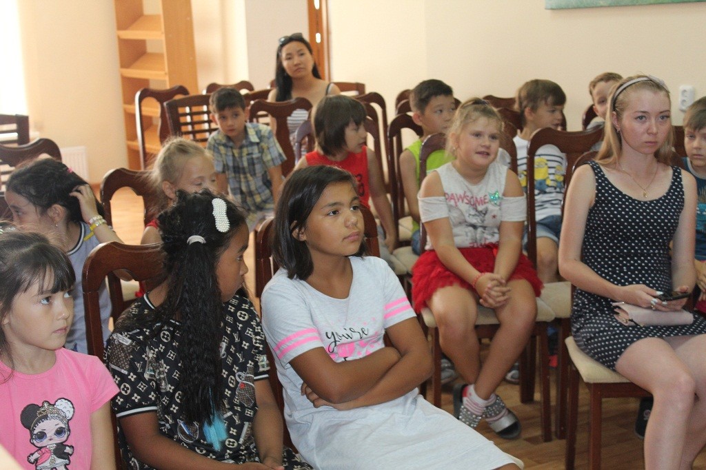 На летней площадке перед библиотекой для воспитанников детского сада «Гвоздичка» и детей из пришкольных лагерей гимназии №1 и ОСШ №64 проведена развлекательная программа «Город мира и сердце Евразии» посвящённая празднованию 06 июля – Дня столицы Республики Казахстан.