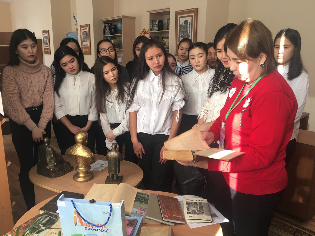 7 февраля ребята 7-х классов общеобразовательной школы-интерната №4 посетили библиотеку с целью ознакомления с мультимедийной выставкой-инсталляцией «Абай мұрасы – мәңгілік мирас», посвященной 175-летию казахского мыслителя, поэта и композитора Абая Кунанбаева.