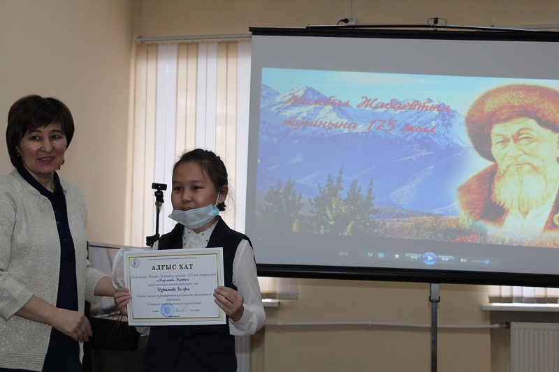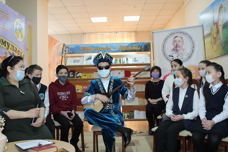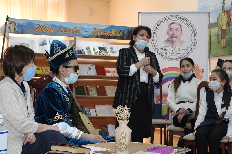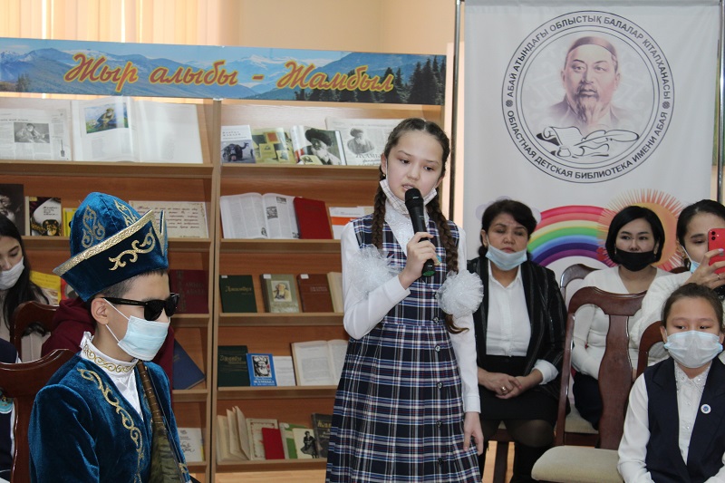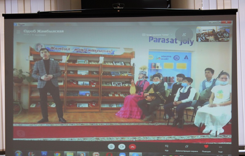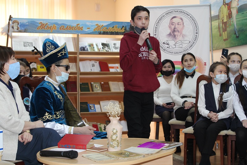 В рамках общереспубликанских мероприятий по празднованию 175-летнего юбилея казахского народного поэта Жамбыла Жабаева в нашей библиотеке состоялся телемост «Жыр алыбы – Жамбыл» совместно с Жамбылской областной детско-юношеской библиотекой им.Д. Кунаева.