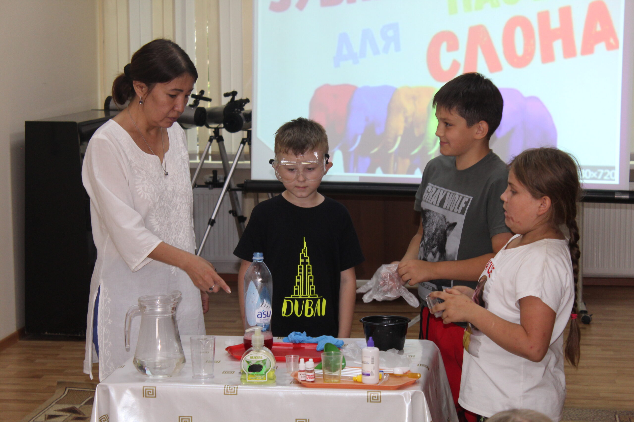 21 июня в библиотеке прошел необычный День занимательных фактов. Ребята из пришкольного лагеря школы № 64 изготовили необычную зубную пасту для слона. Все с интересом наблюдали за химической реакцией смешанных веществ. Им было предложено провести такой же эксперимент в домашних условиях под присмотром взрослых.