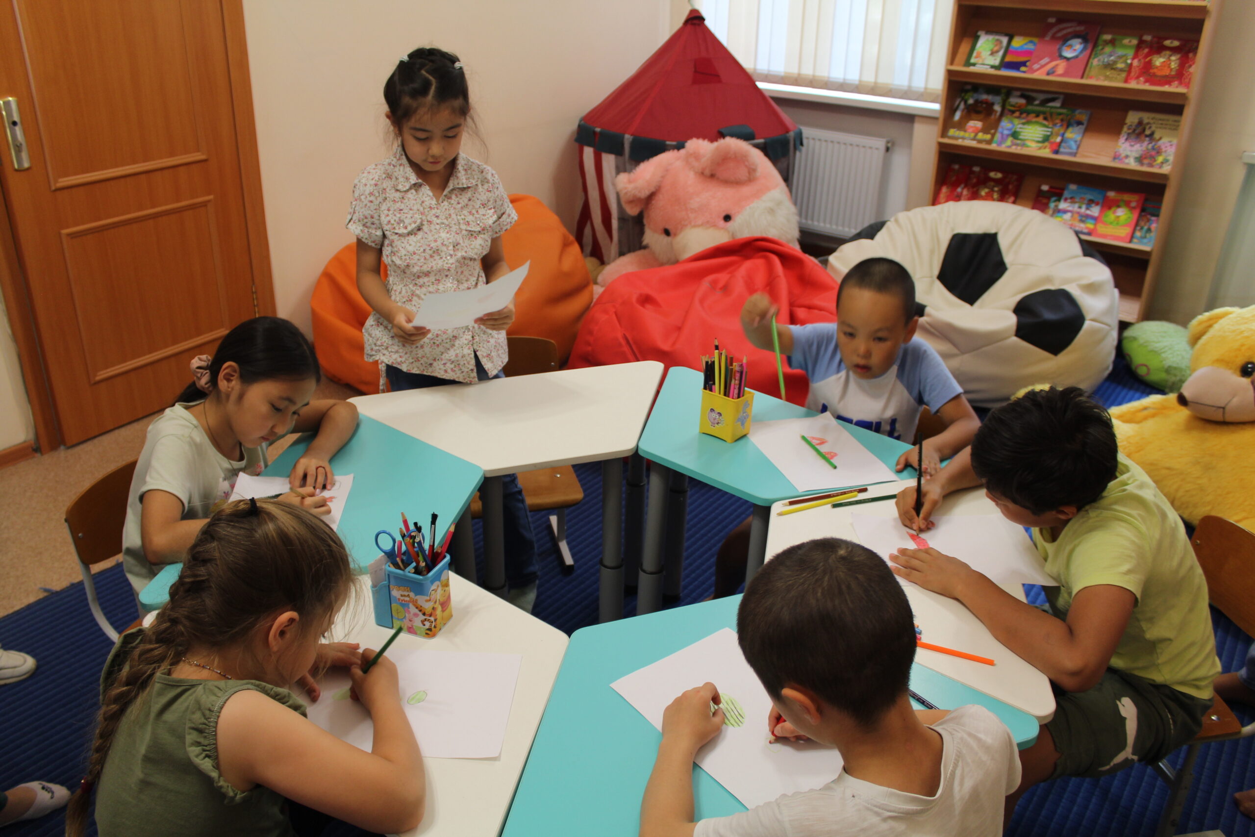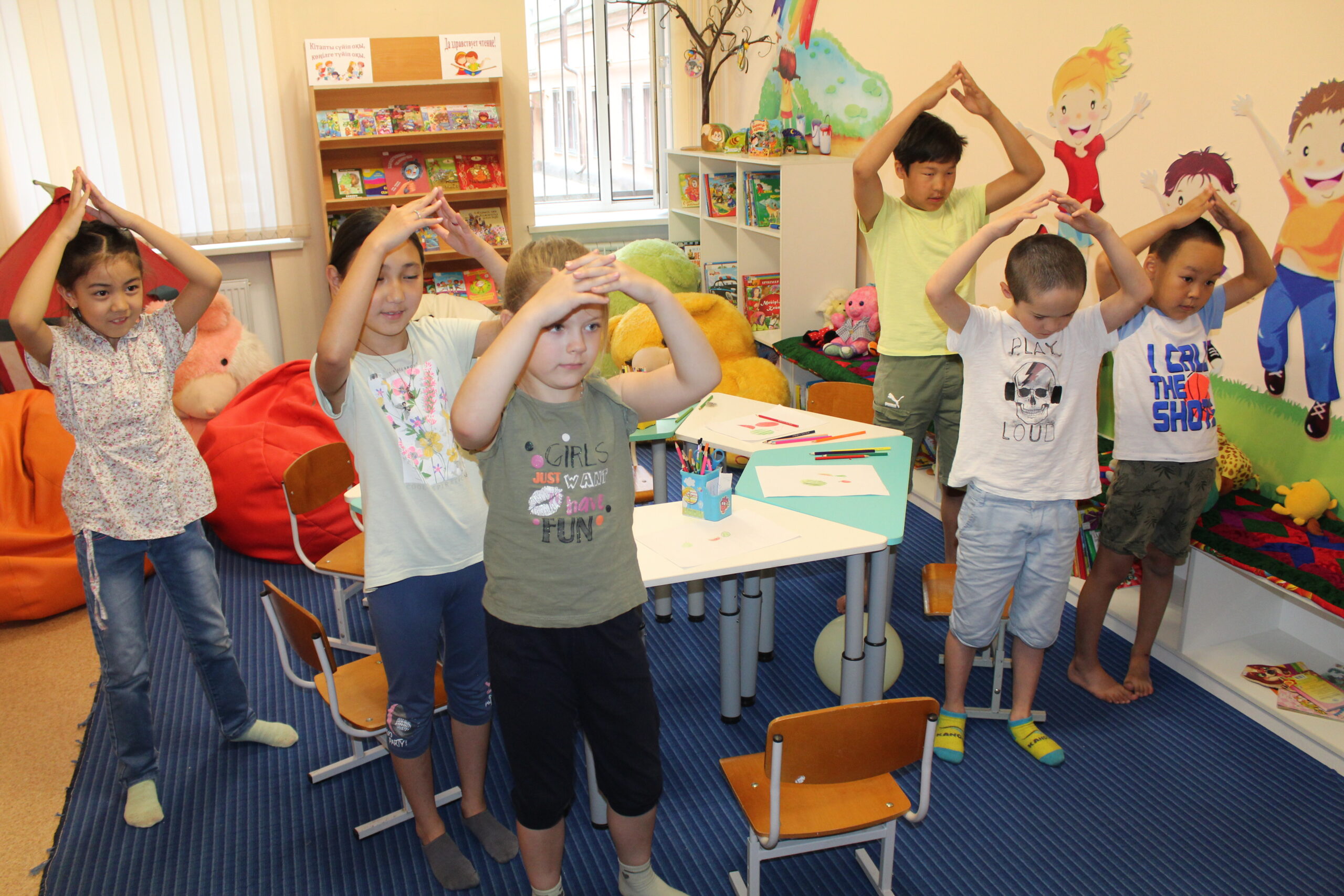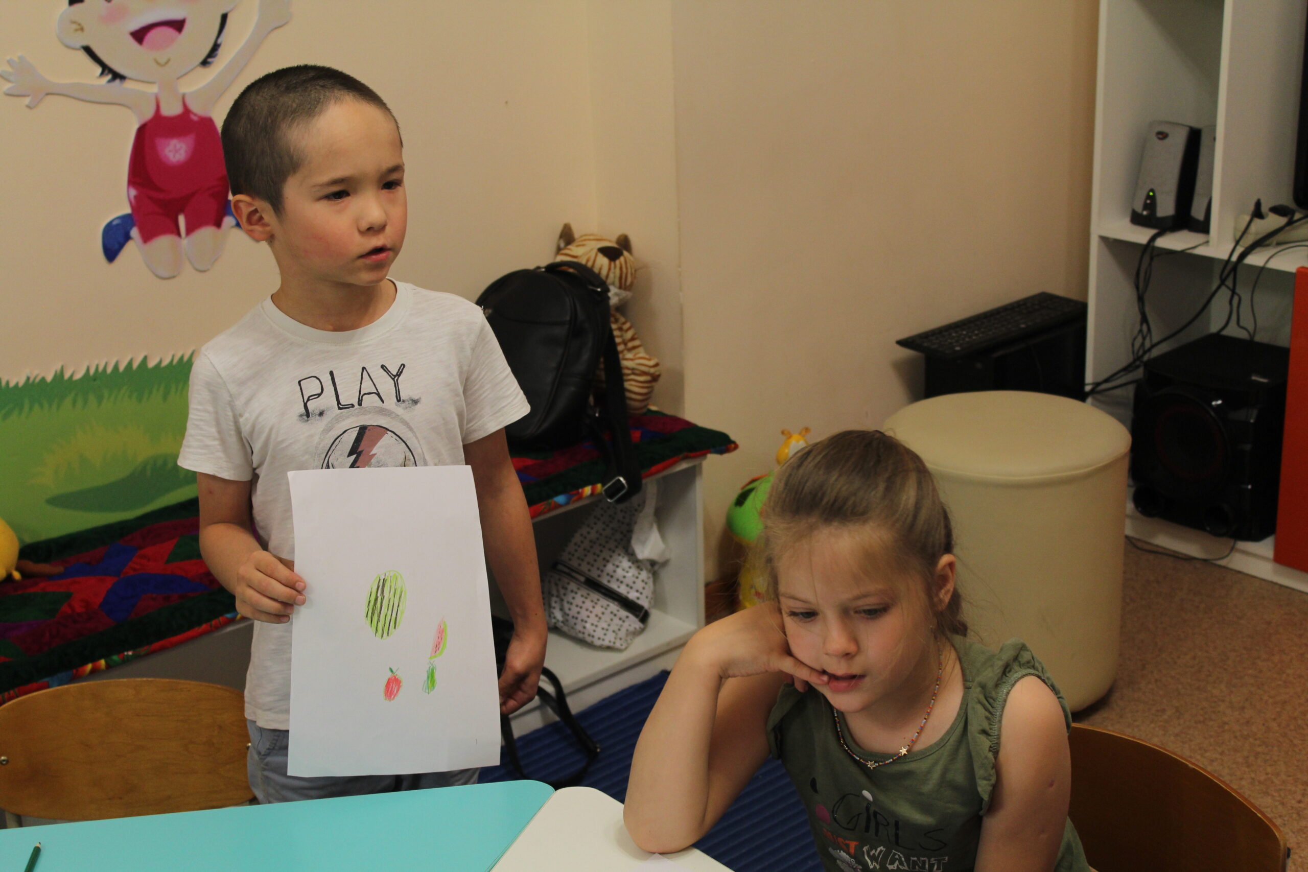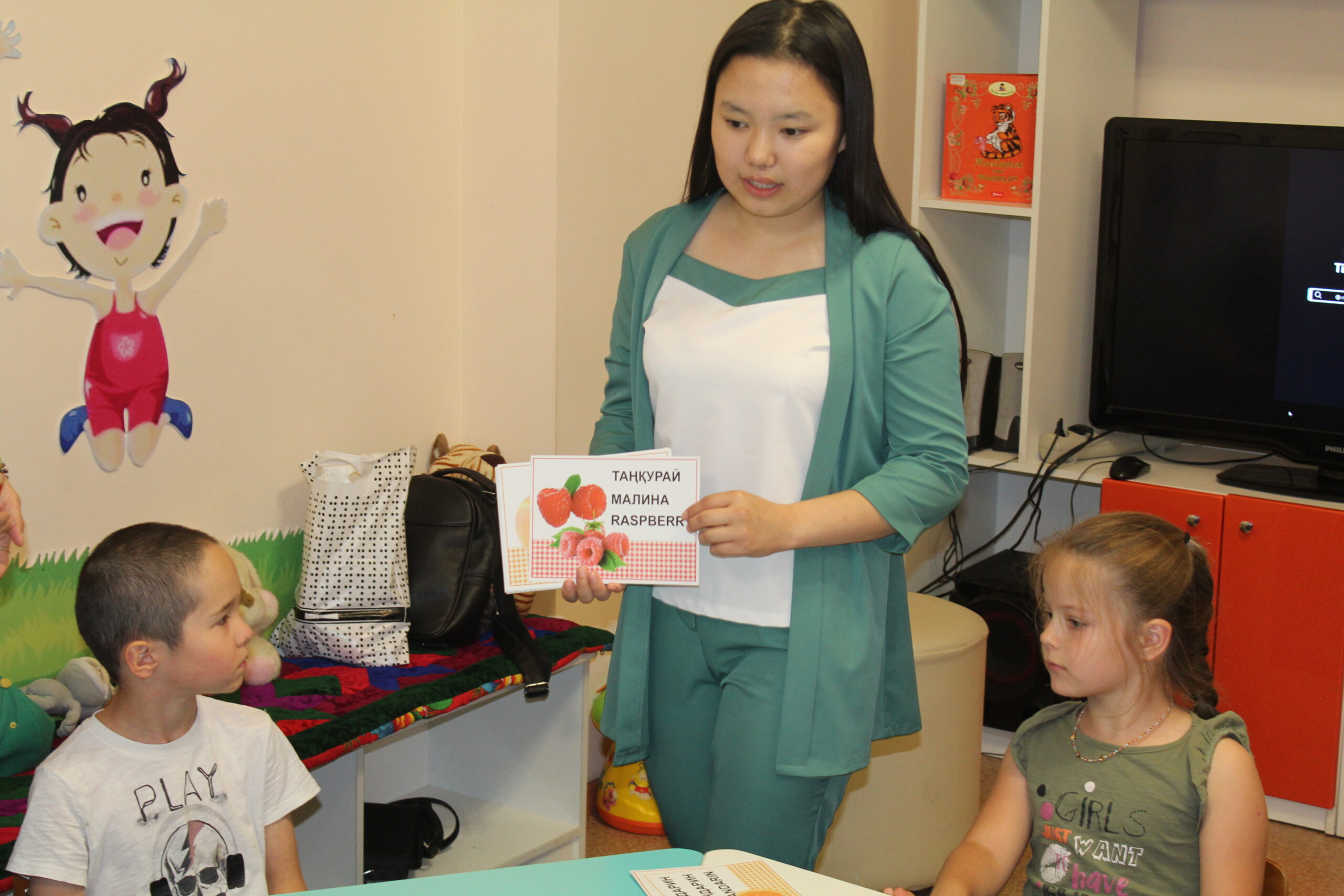 На занятии кружка «Кел, қазақша сөйлейік!» ребята вместе с практикантами КарУ повторяли названия фруктов и ягод на казахском языке. Дети рисовали свой любимый фрукт, составляли пазлы, играли в игру «Что за ягода?», учились произносить фразы «Сколько стоят груши?», «Яблочный сок полезный и вкусный» и др. Урок закончился фруктово-ягодным угощением.
