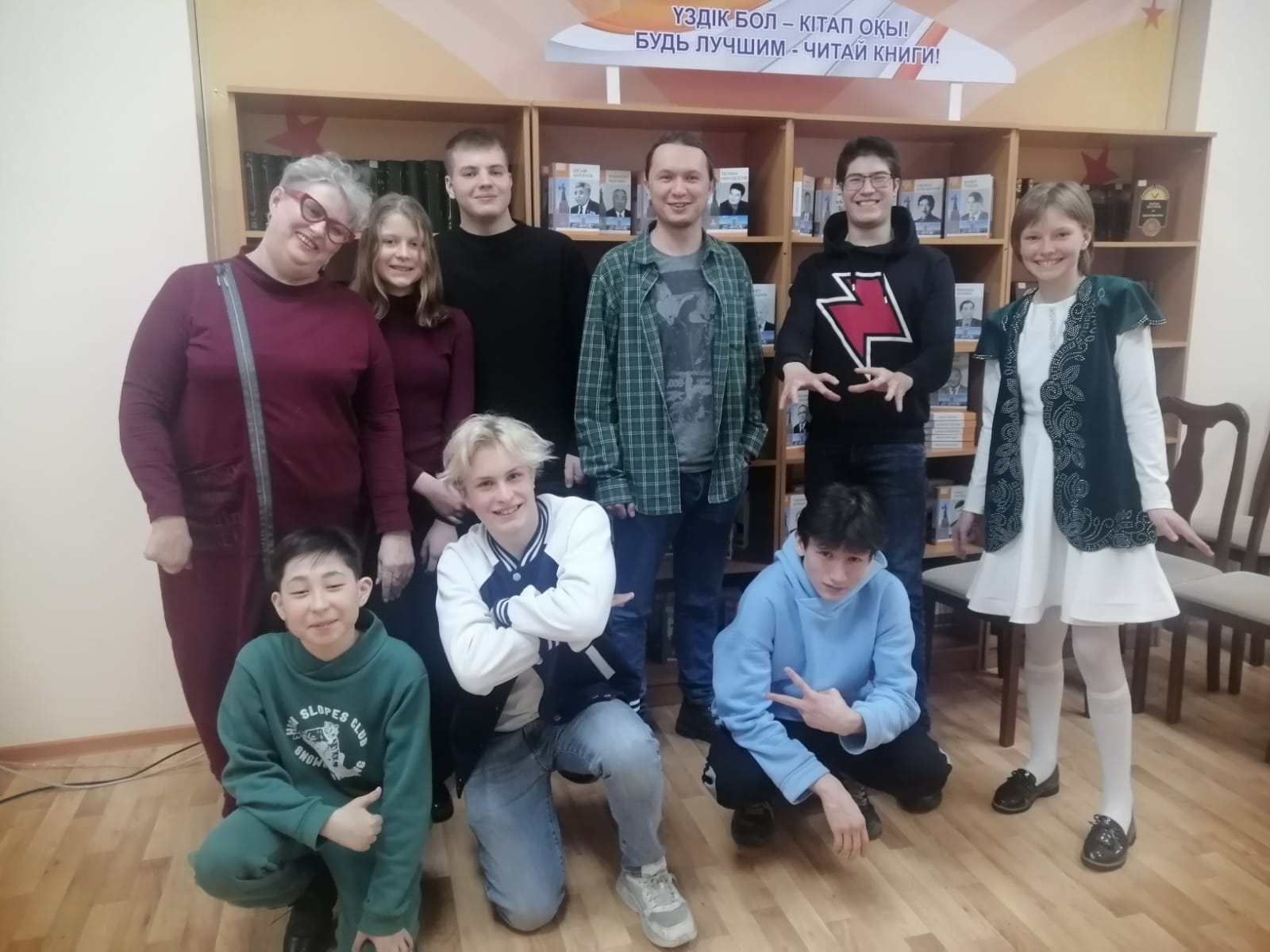 В библиотеке прошла творческая лаборатория «Мастера слова тоже шутят» с участием карагандинского поэта, музыканта, автора-исполнителя Вадима Кима. Говорили о разном: о первой гитаре, о музыке, о кино и, конечно, о литературе, первых шагах поэтического творчества. Вадим спел несколько своих песен, а ребята «засыпали» его вопросами, на которые он отвечал максимально честно.