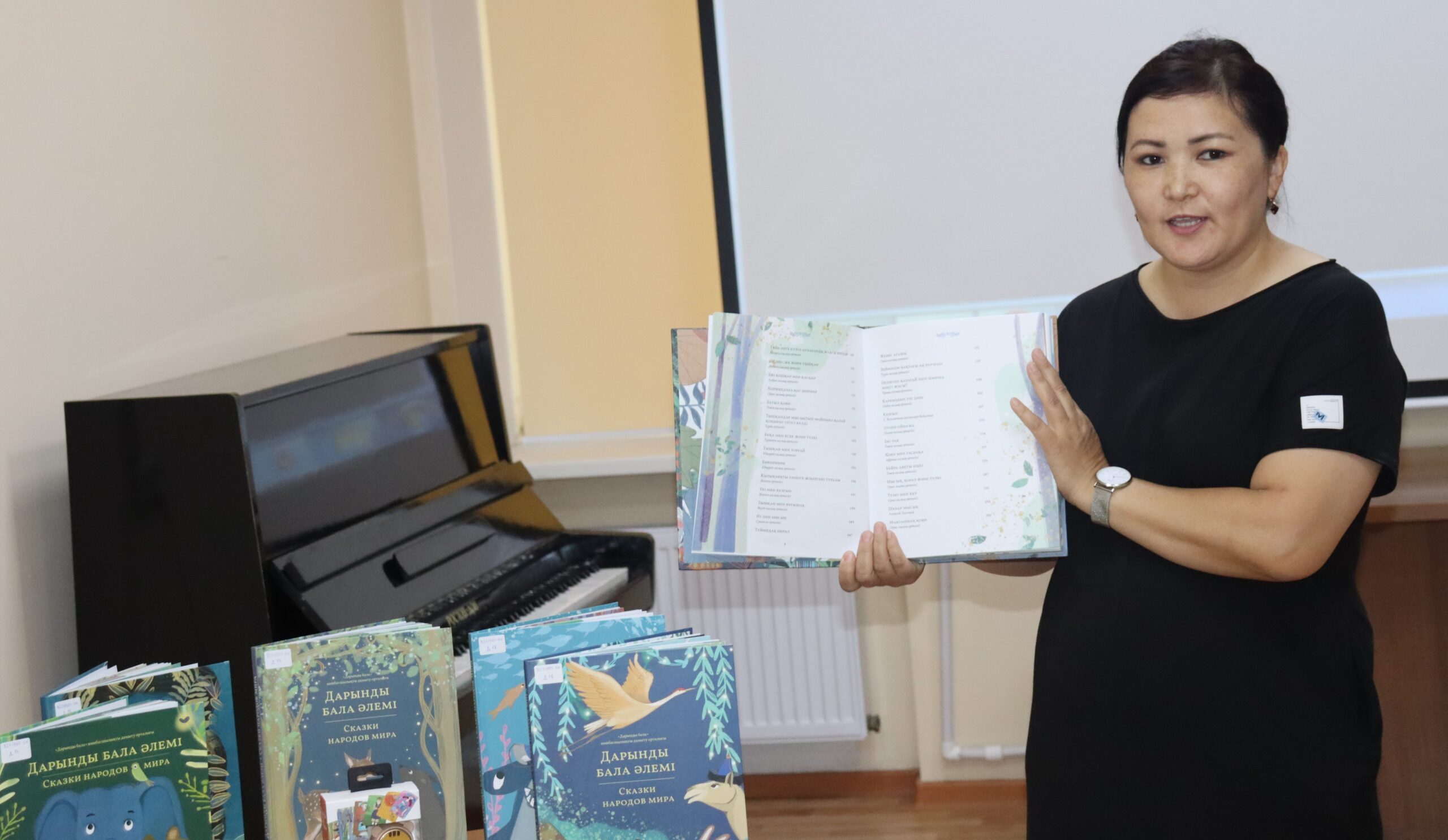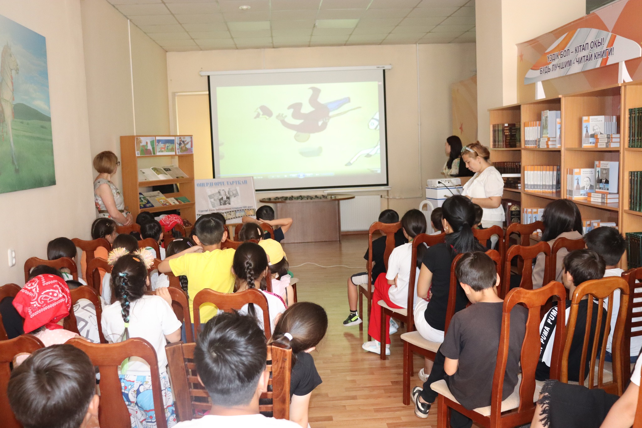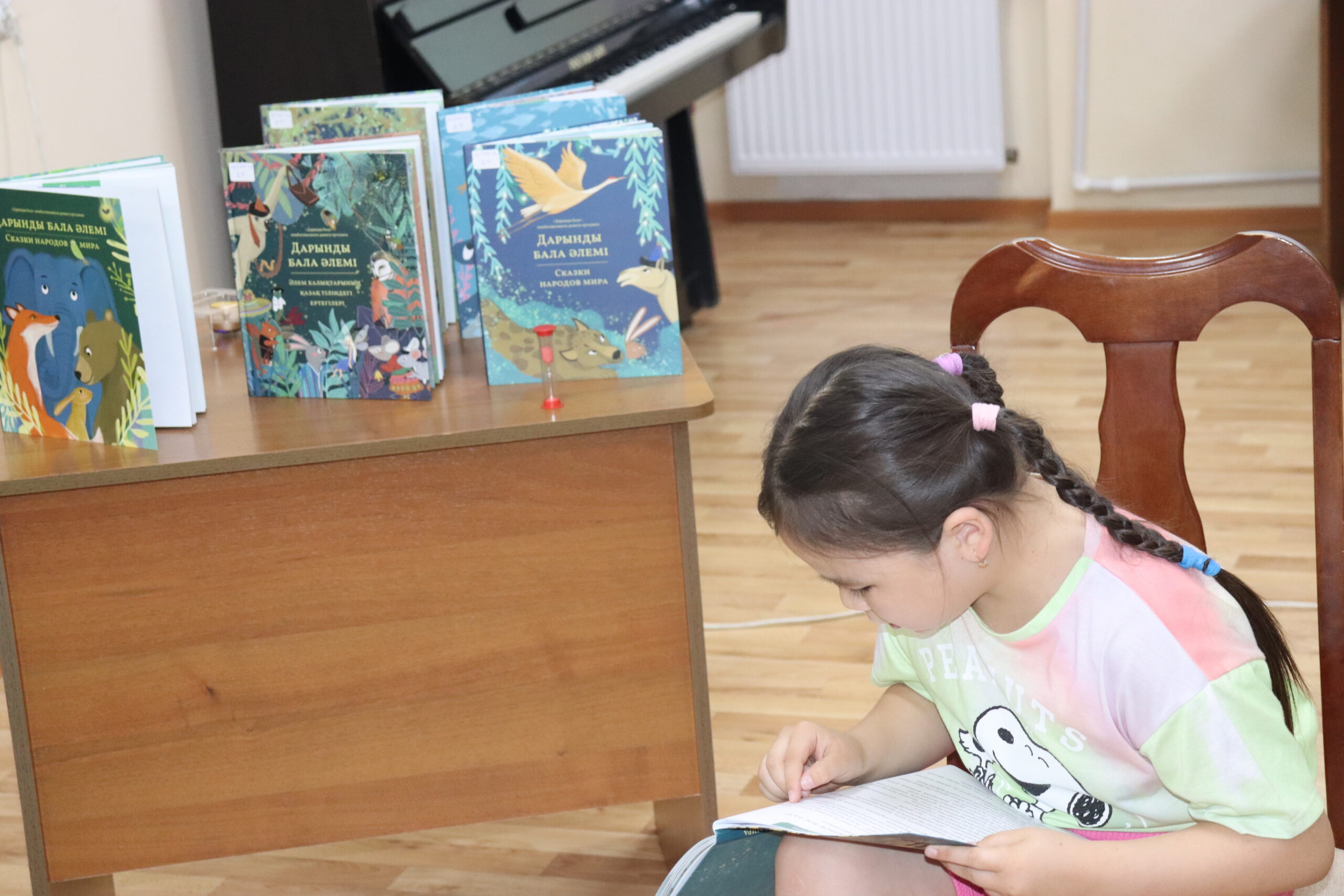 В рамках долгосрочного проекта «Лето. Дети. Книга»в библиотеке проведен обзор серии книг «Дарынды бала әлемі».