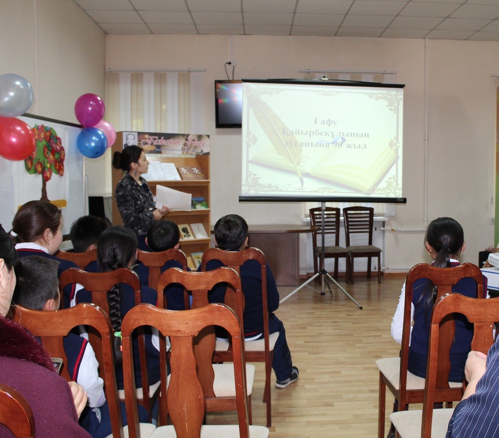 14 сентября в библиотеке прошел литературный час, посвященный 90-летию со дня рождения Гафу Каирбекова. В мероприятии приняли участие учащиеся школы №15. Основной целью мероприятия было ознакомление с жизнью и творчеством известного казахского поэта.