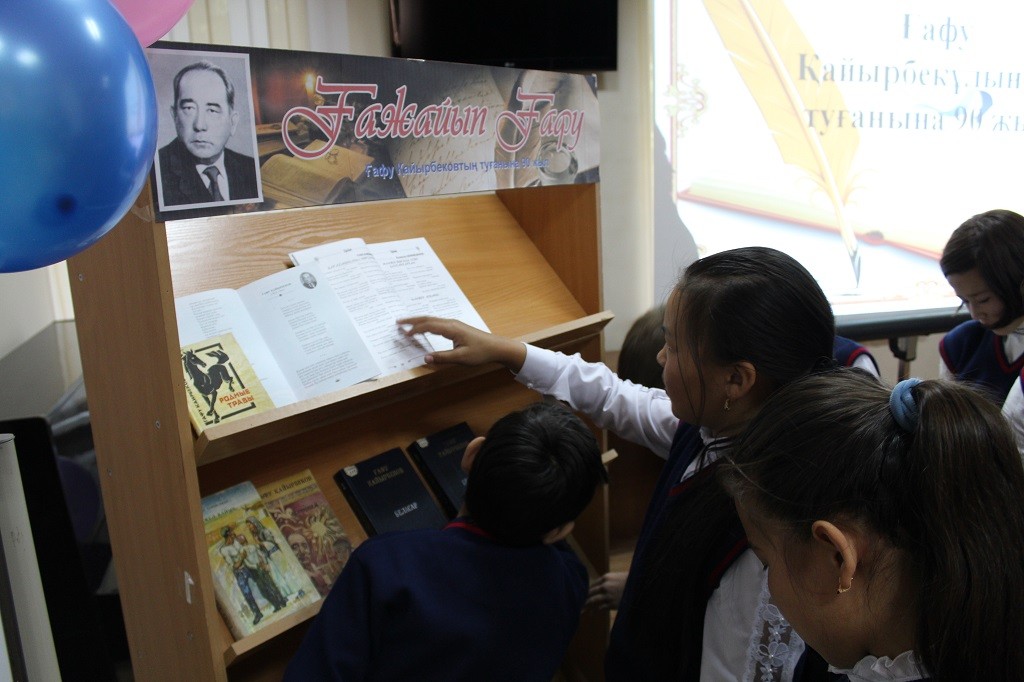 Для детей был проведен обзор книжной выставки «Необыкновенный Гафу», проводилась игра — викторина «Кто быстрее». С целью повышения интереса учащихся к творчеству писателя детям рассказали «Легенду о тулпаре» из сборника очерков «Страна и земля».