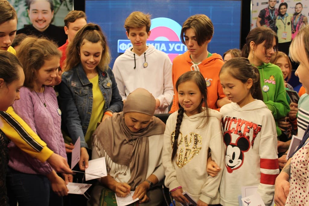 На диалоговой площадке встретились учредитель детского центра развития лидерства «Дарынды бала», обладательница нагрудного знака «Алтын алқа», член Совета деловых женщин Карагандинской области Хамитова Айнагуль и ребята СОШ №83 им. Г. Мустафина и №10, более 60 человек.