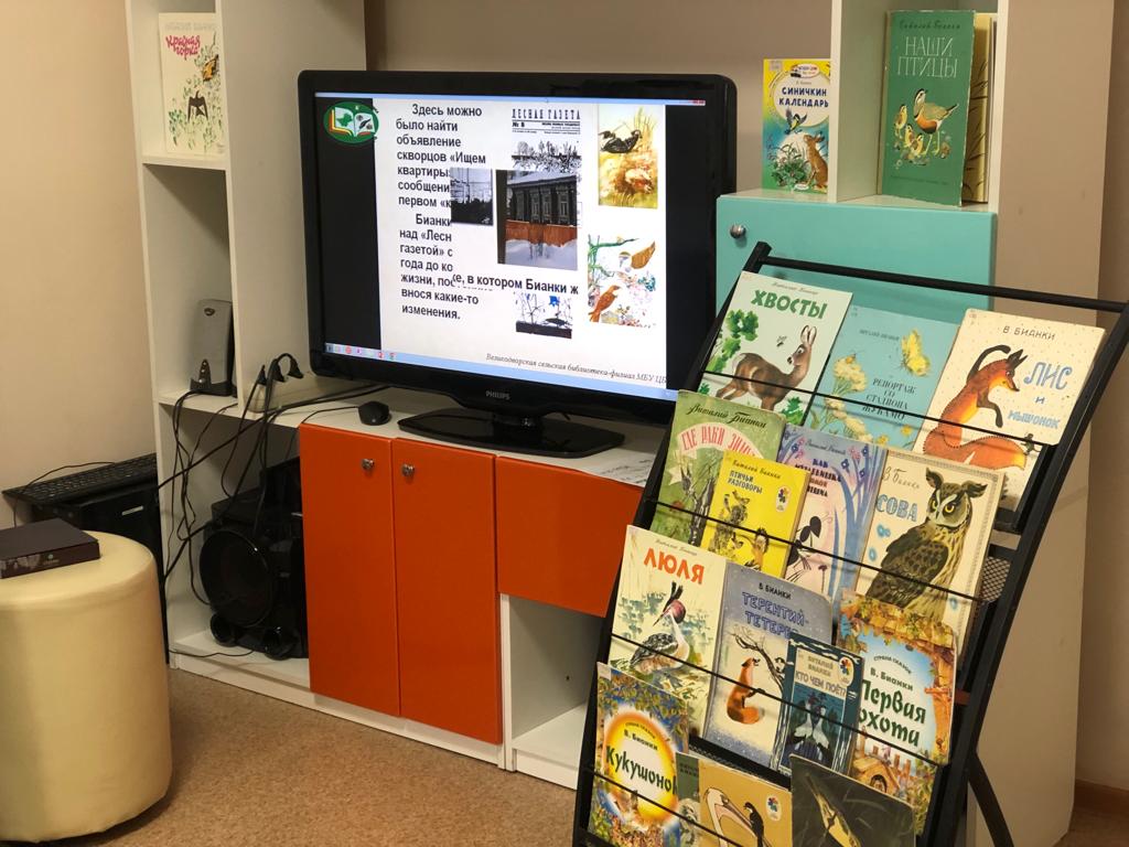 Ребята совершили необычную прогулку в мир природы, которая началась с виртуальной экскурсии в лес (слушали голоса птиц, наблюдали за повадками диких животных), отгадывали загадки о животных по его произведениям, посетили лесную библиотеку (выставка книг по сказкам Бианки).