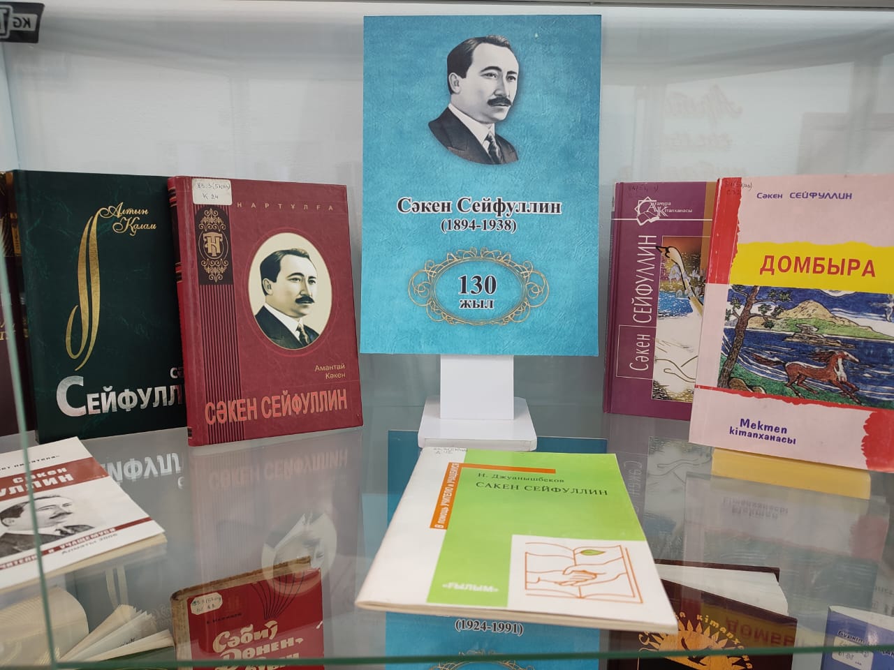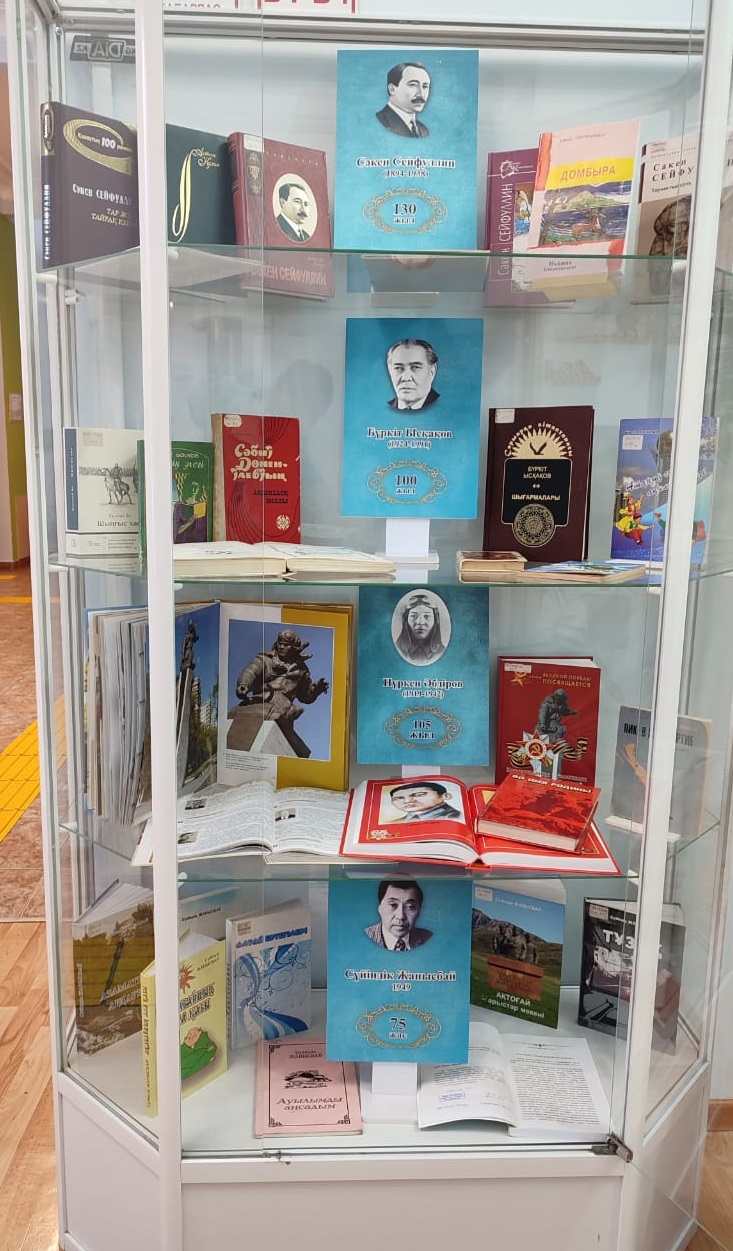 На выставку подобраны издания о юбилярах, их произведения из книжного фонда библиотеки имени Абая.