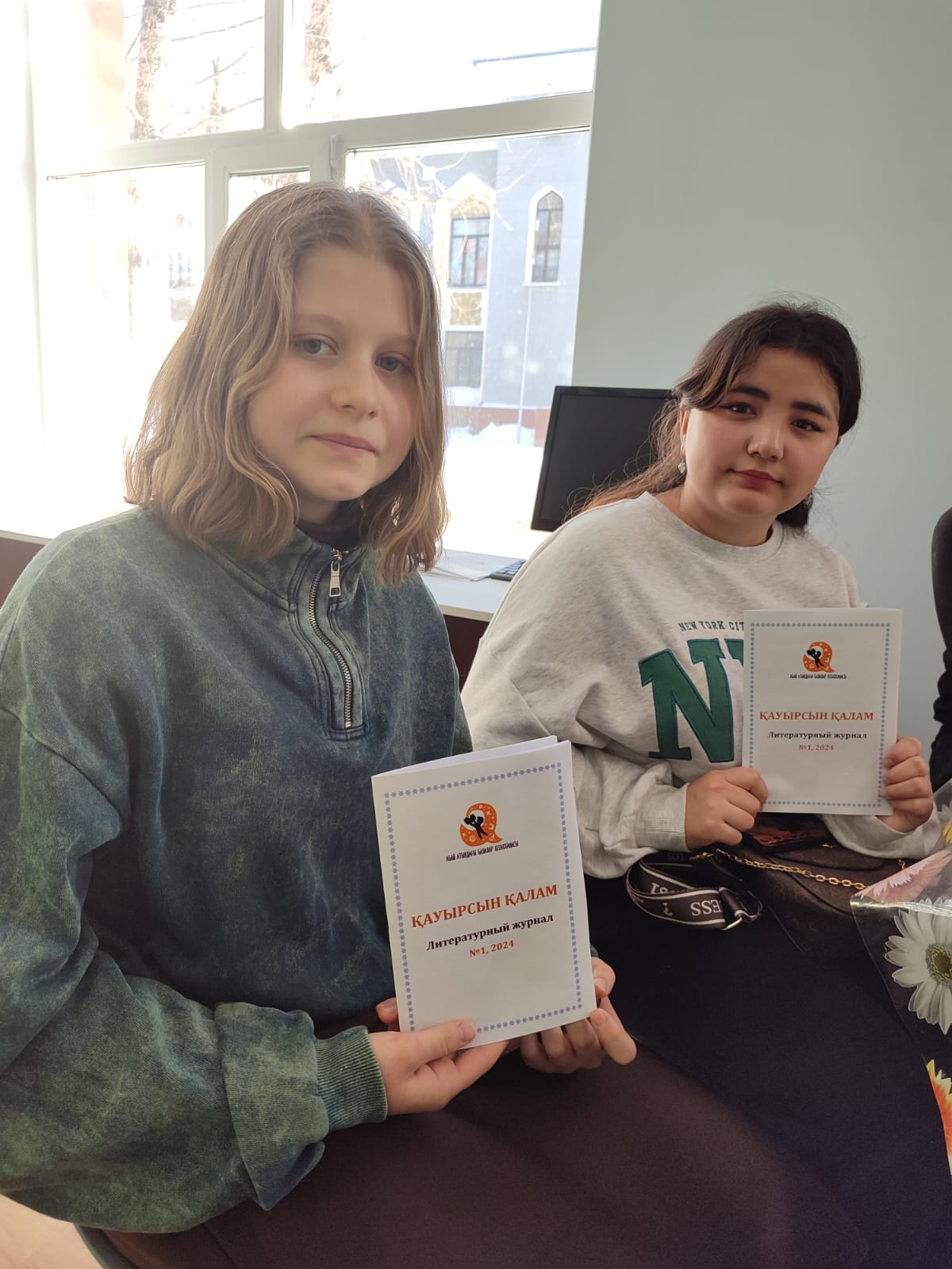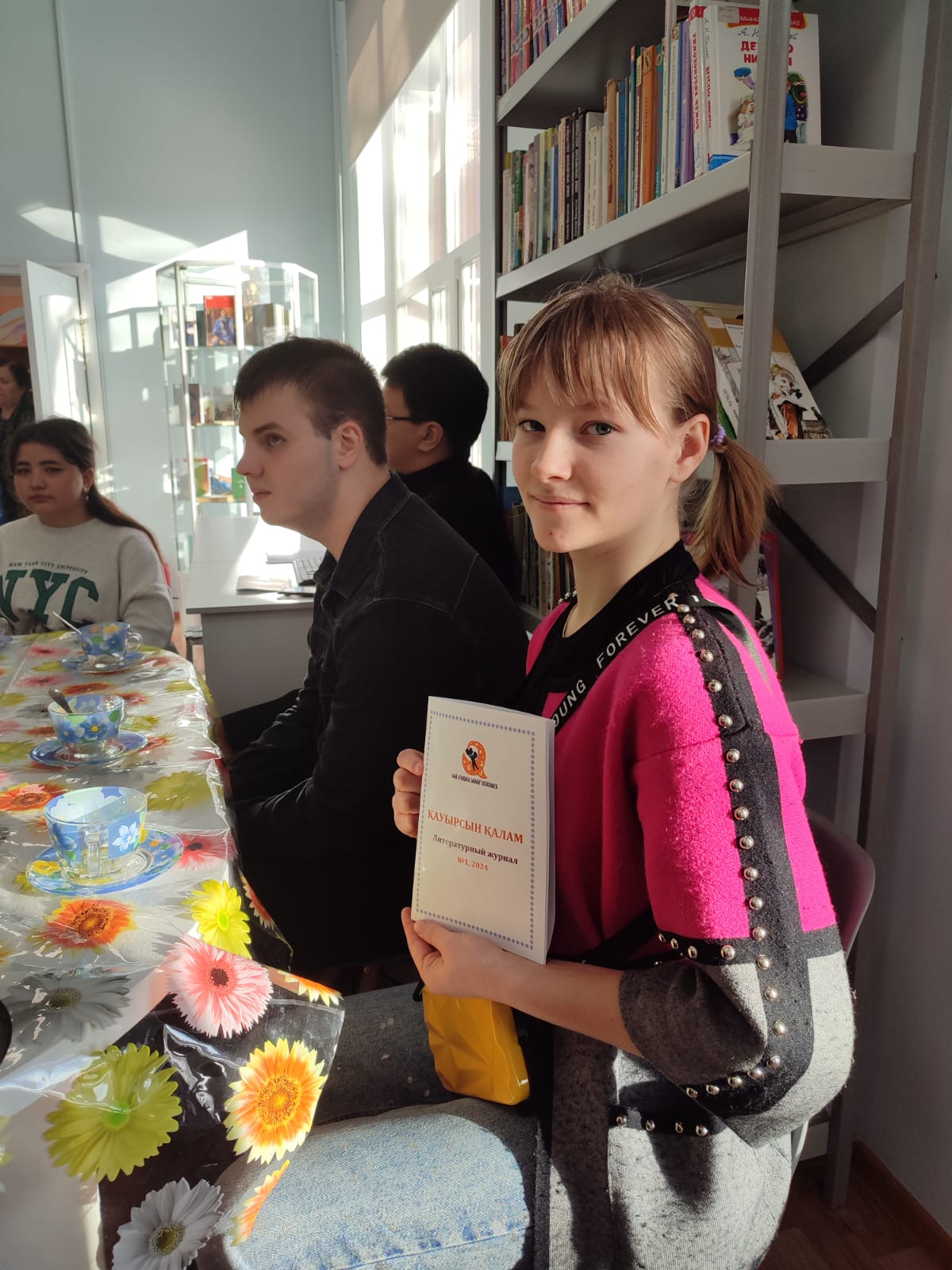В конце встречи активисты клуба вручили ребятам первый номер библиотечного литературного журнала «Қауырсын қалам», над созданием которого работали все участники клуба. Встреча за чашкой чая и домашней выпечкой прошла очень тепло и позитивно.