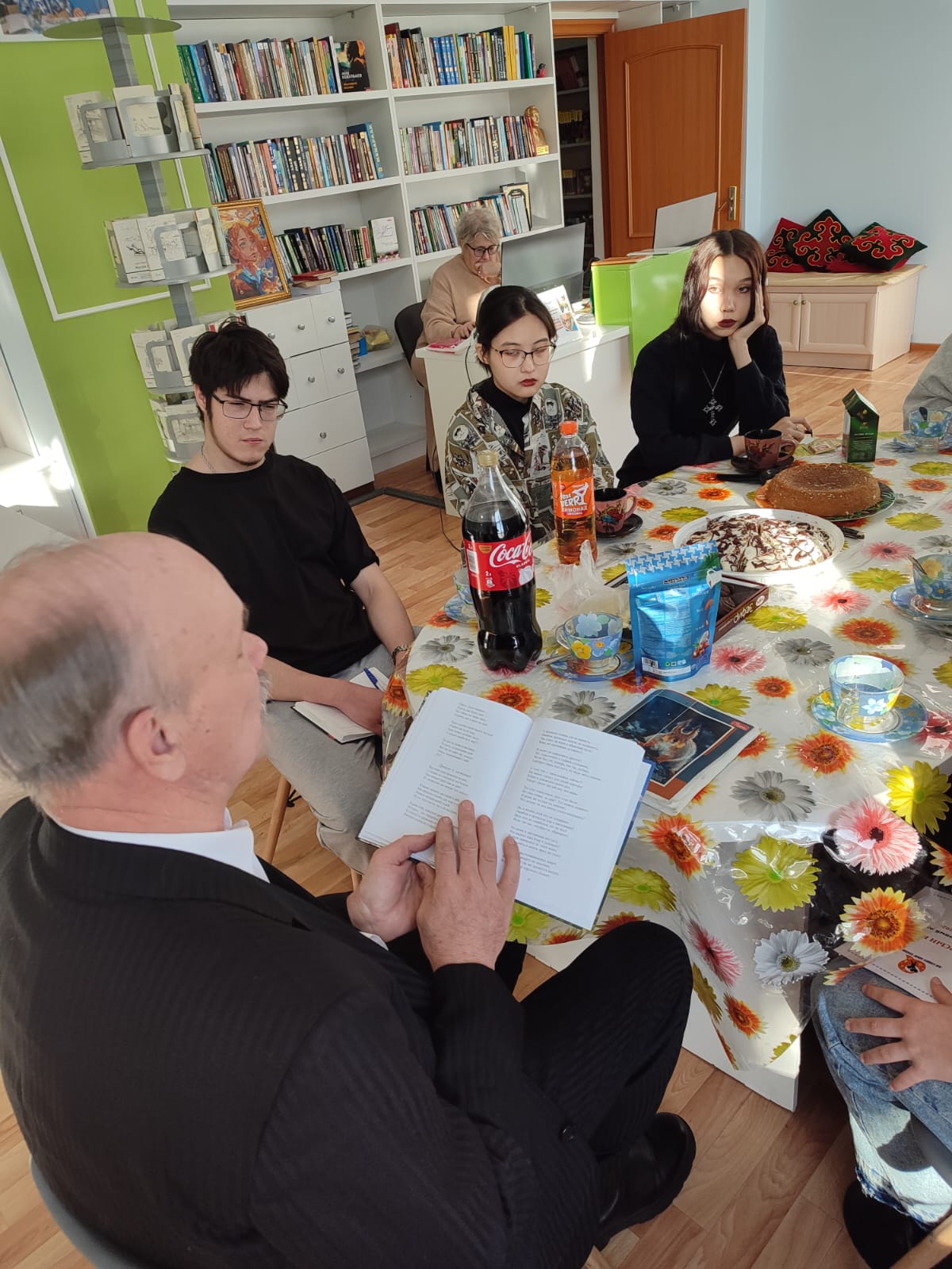 В библиотеке прошла первая в этом году встреча ребят из литературного клуба «Қауырсын қалам» с карагандинским поэтом Николаем Петровичем Федоровым. Участник многих литературных форумов, преподаватель русского языка и литературы, автор сборника «Я люблю этот мир», Николай Петрович поделился с будущими писателями и поэтами секретами поэтического ремесла.