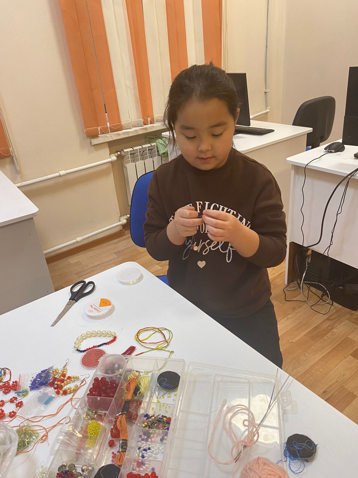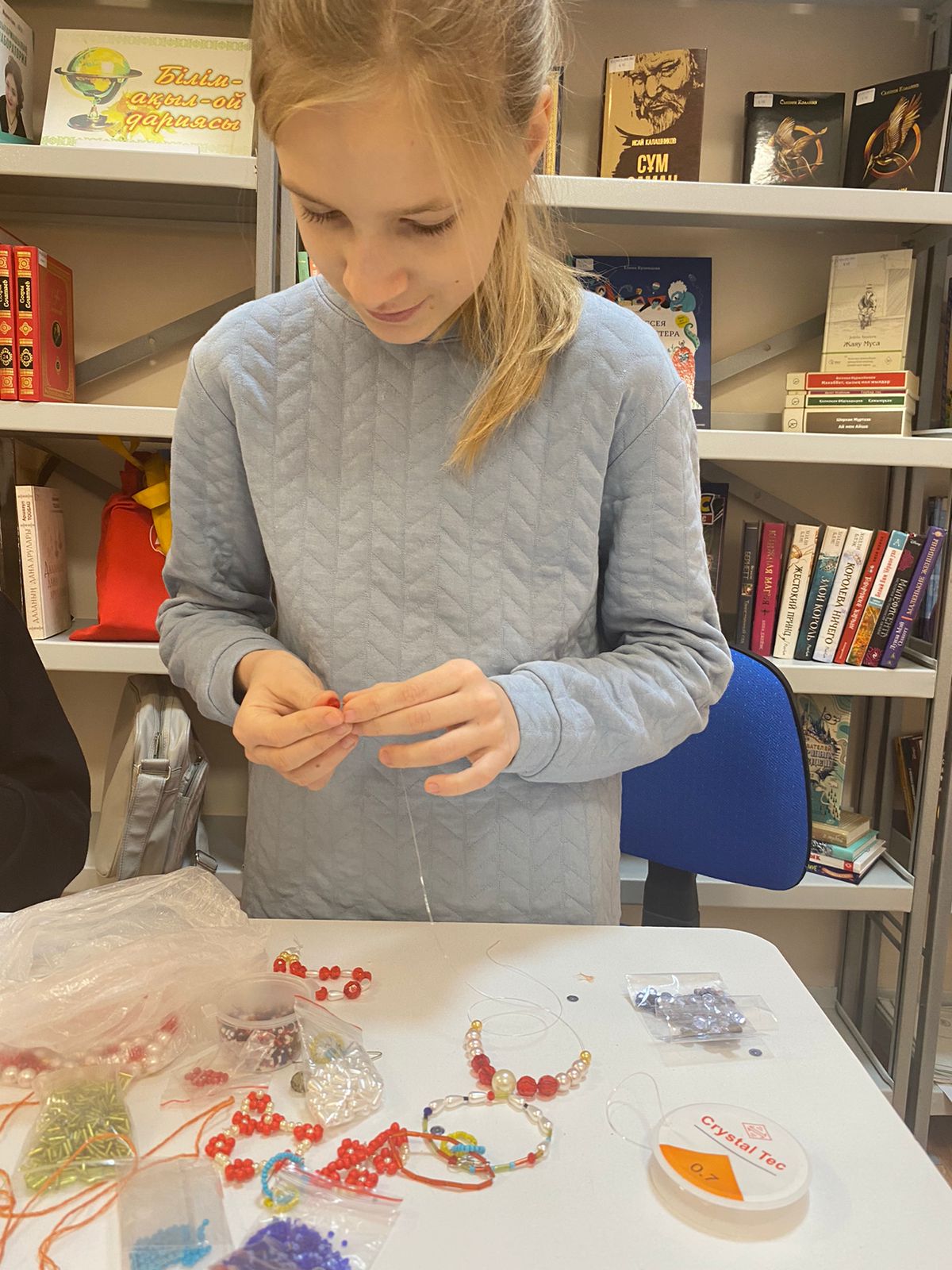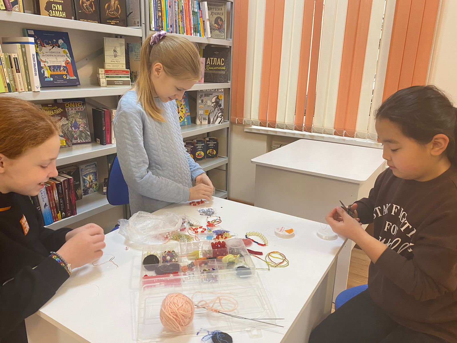 Для наших читателей-рукодельниц в библиотеке прошел мастер-класс «Ниткография» с наставником Ботагоз Кошкимбаевой. Ниткография – это способ создания картин без применения красок и кисти. Здесь для придания объема и цвета картине используются нити и клей. Это более простой вариант проявить свои творческие навыки, который набирает популярность и имеет своих фанатов.