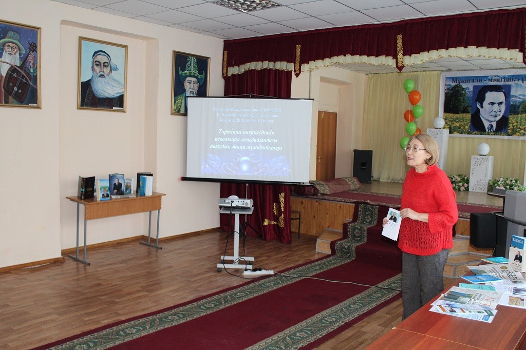 Мероприятие завершилось обзором тематической полки «Послание — новые возможности для развития», где были выставлены периодические издания,раскрывающие содержание Послания.