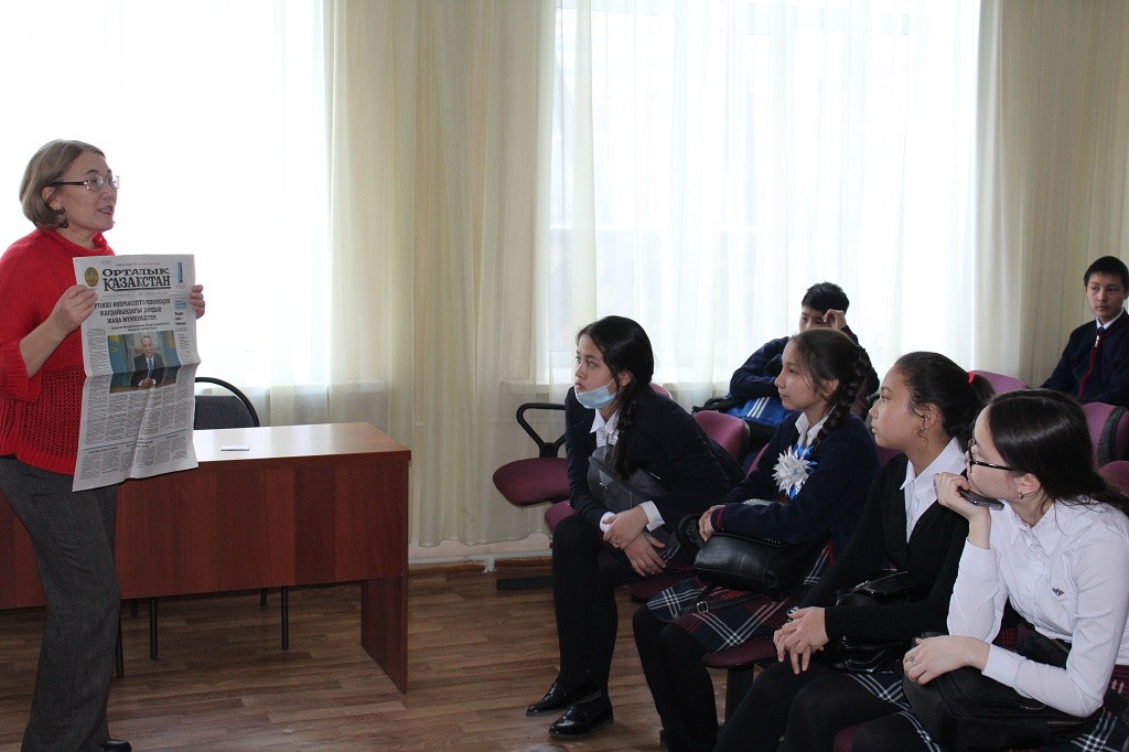 В целях пропаганды Послания Президента Н.А.Назарбаева народу Казахстана 5 марта сотрудники библиотеки провели беседу «Послание Президента – исторический документ» с участием 8-9 классов СОШ №41. Библиотекарьразъяснила ребятам основные 10 направлений развития нашейстраны.