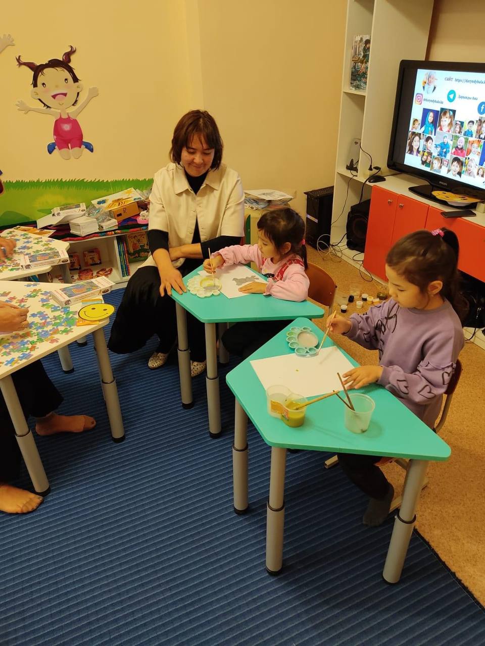 Параллельно с презентацией книги в интеллектуальной комнате «Куншуак» для читателей библиотеки был проведен мастер-класс от педагогов карагандинского детского сада «Дарынды бала».