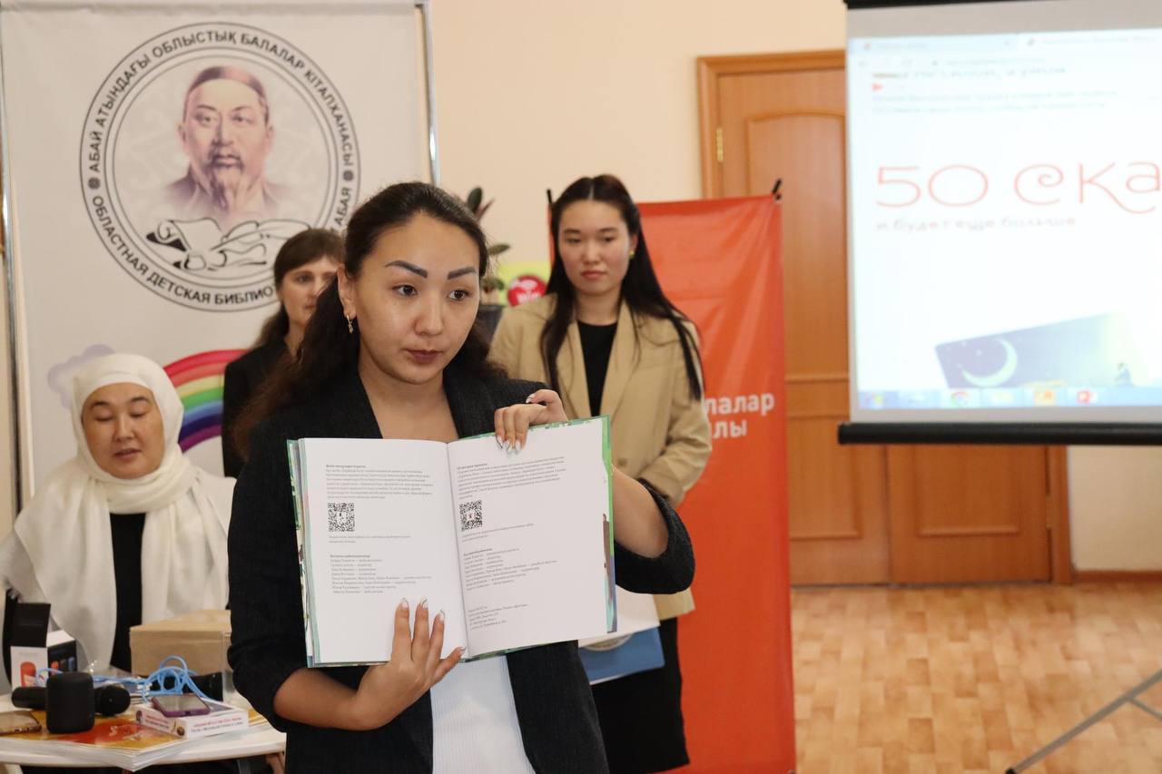 Так же вниманию родителей и руководителей детским чтением были представлены аудиосказки на казахском языке, озвученые профессиональными актерами с использованием звуковых спецэффектов и детская блютузколонка со вшитым материалом.