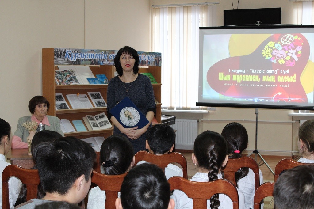Сотрудники библиотеки 1 марта для ребят 7-х классов гимназии №3 провели информ-дайджест «Құрметтің ең биігі – алғыс» с участием представителя Областного фонда белорусской культуры «Спадчына» — Мисоченко Нины Алексеевны.