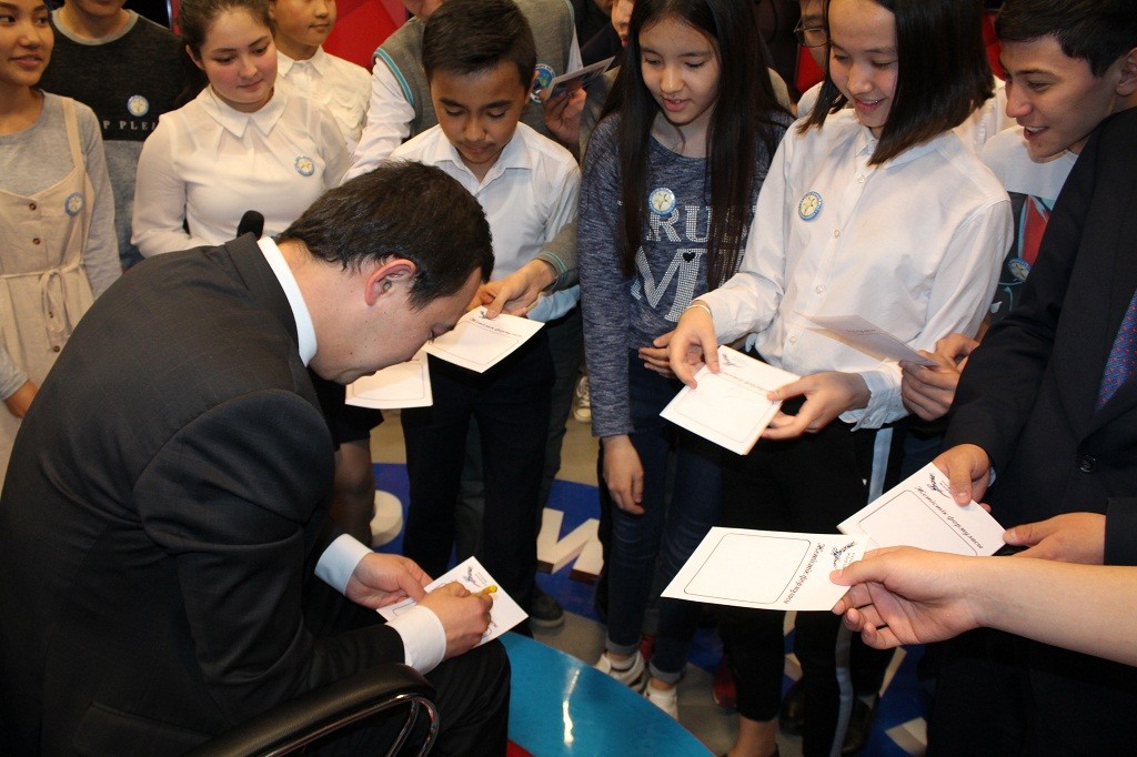 Много вопросов о деятельности Международного финансового центра, детстве и юности и жизненных ценностях прозвучало от ребят. Диалог получился живой, интересный, познавательный. По просьбе участников диалоговой площадки Ернур сыграл на домбре, а позже двое ребят за интересные вопросы получили от него подарки.