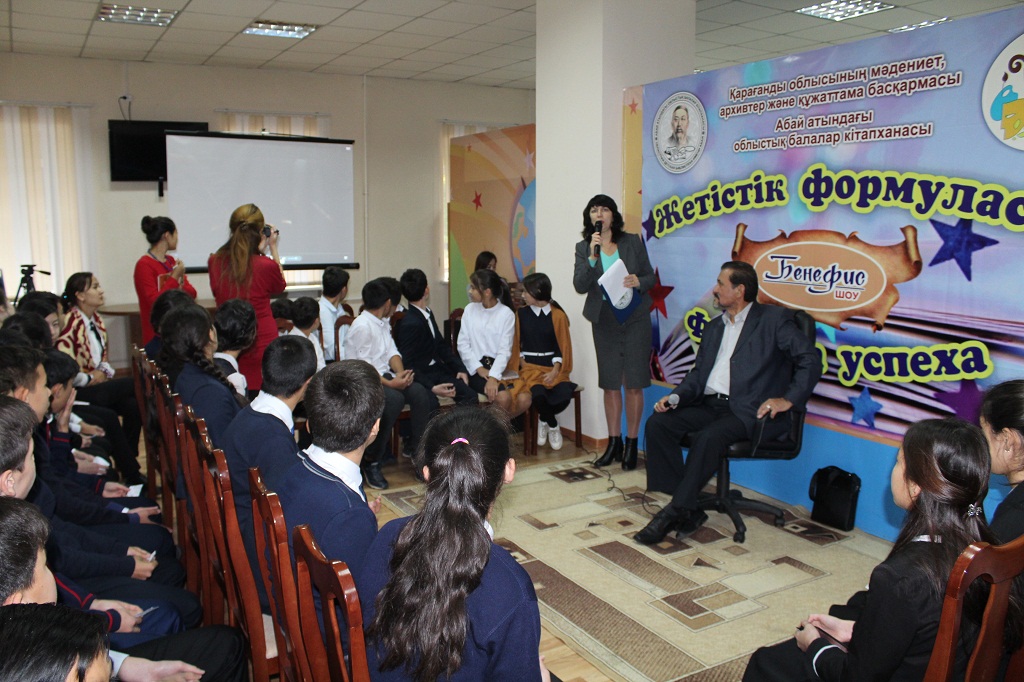 Проект «Бенефис-шоу «Формула успеха», проходит в Карагандинской областной детской библиотеке имени Абая не первый год. На диалоговой площадке учащиеся школ, гимназий, студенты колледжей встречаются со знаменитыми и успешными людьми Карагандинской области.