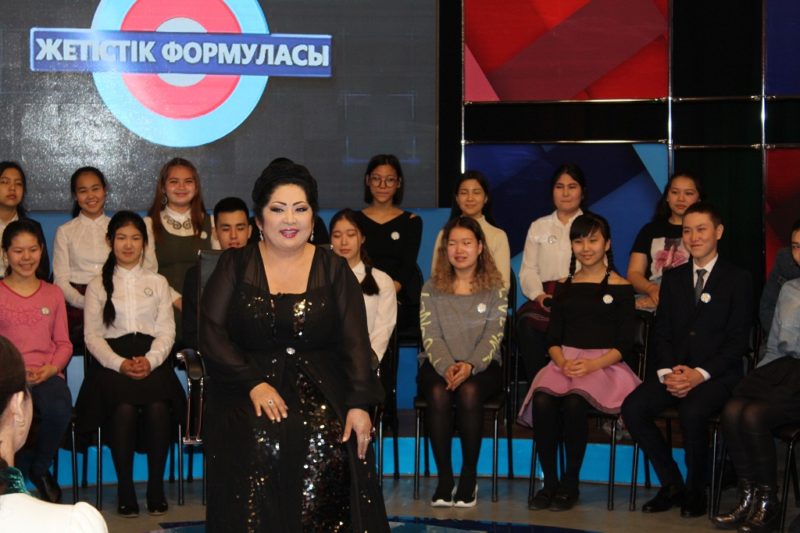 На диалоговой площадке встретились Народная артистка Республики Казахстан, лауреат Государственной премии РК и международных конкурсов, певица Жунусова Макпал Мухамедияровна и ребята, более 60 человек.