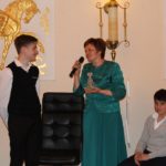 На площадке прозвучало 29 вопросов, и на все вопросы были даны ответы. Наиболее интересным вопросом для Почетного гостя оказался вопрос о первой школьной влюбленности. Владислав Куковский, ученик 7 «Б» класса гимназии №95 за этот вопрос получил от депутата памятный сувенир – хрустальный колокольчик.