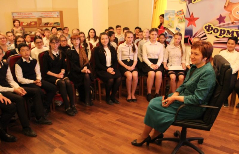 В Обрядовом зале Дворца культуры горняков 16 мая в 15.00 ч. ребята 6-8 классов школ-гимназий № 97, 93, 1, 95, 45 в рамках проекта «Бенефис-шоу «Формула успеха» встретились на диалоговой площадке с депутатом Карагандинского областного маслихата Мухутдиновой Лилией Павловной — членом постоянной комиссии по социально-культурному развитию и социальной защите населения областного маслихата, членом партии «Нұр Отан».