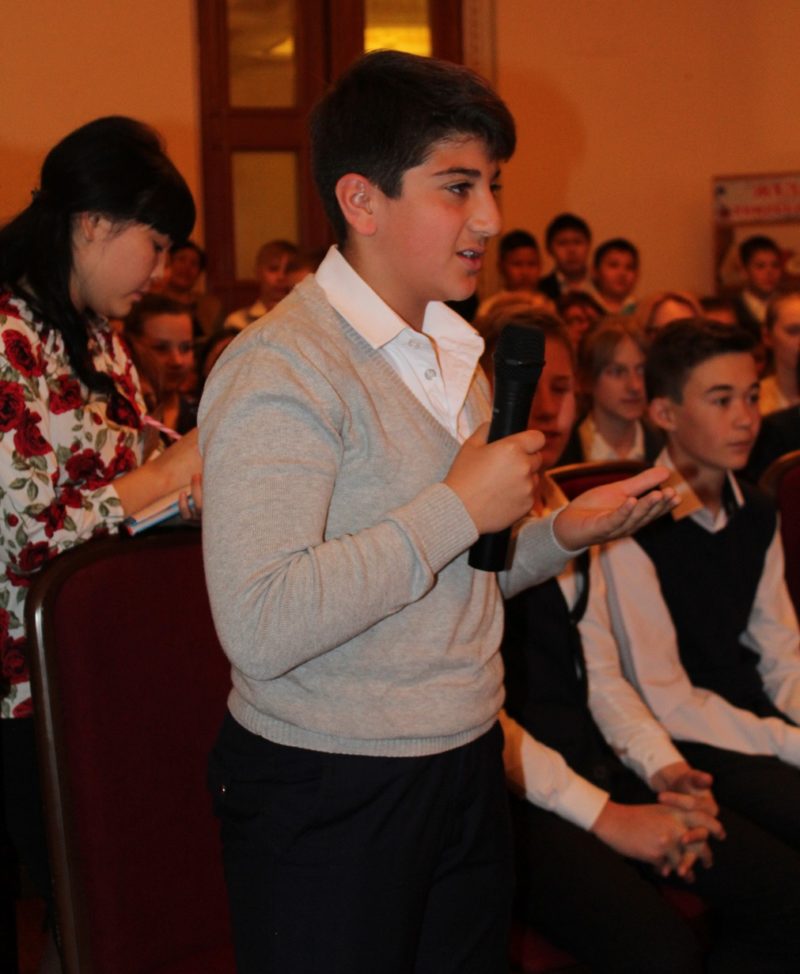 На площадке прозвучало 29 вопросов, и на все вопросы были даны ответы. Наиболее интересным вопросом для Почетного гостя оказался вопрос о первой школьной влюбленности. Владислав Куковский, ученик 7 «Б» класса гимназии №95 за этот вопрос получил от депутата памятный сувенир – хрустальный колокольчик.