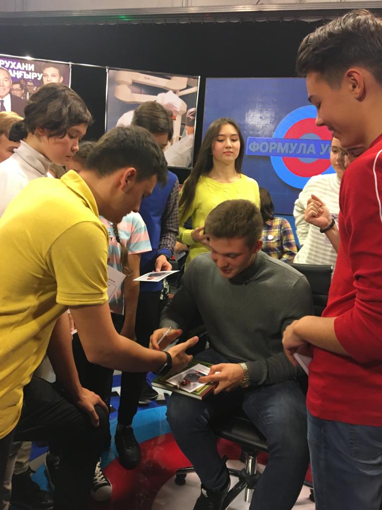 По условию бенефис-шоу Гость выбирает самый понравившийся вопрос и дарит от себя подарок тому, кто его задал. Подарком от Никиты был спиннер-магнит, который получила ученица 11 «Б» класса СОШ №63 Балжуманова Айгерим.