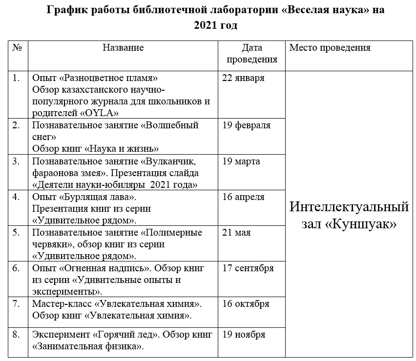 График работы «Веселая наука» 2020
