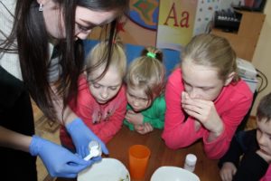 Как приготовить полимерных червяков, какими удивительными свойствами они обладают, все это смогли увидеть ребята на занятии. Проведенный опыт был простым и безопасным, были использованы альгинат натрия, хлорид кальция, краситель красный и теплая вода.