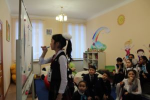 Библиотекарь помогла ребятам освоить основные правила написания казахских слов на латинице, используя интерактивные игры «Бізбен оңай әрі тез» и «Мен үйренемін ойын-сабағы».