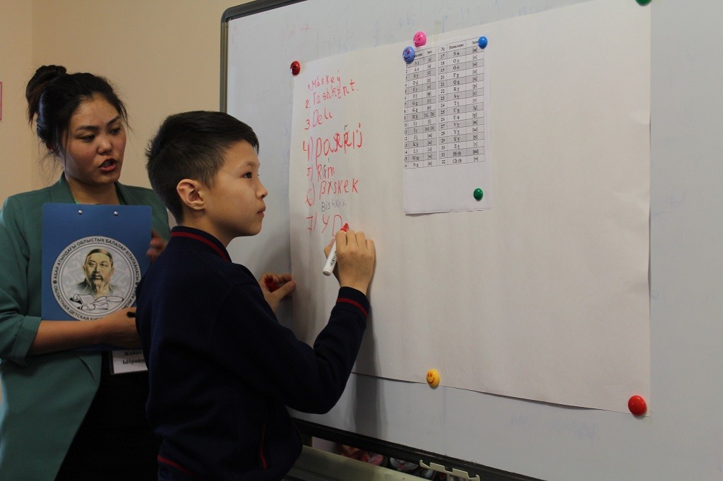 Библиотекарь помогла ребятам освоить основные правила написания казахских слов на латинице, используя интерактивные игры «Бізбен оңай әрі тез» и «Мен үйренемін ойын-сабағы».