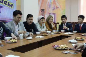 Заседание клуба было проведено с участием молодежи интеллектуального центра «БОТА» областной юношеской библиотеки имени Ж.Бектурова и учащихся лицея-интерната №1 «Образование-инновация». В ходе мероприятия активный участник центра «БОТА» Н.Ахметов прочитал отрывок из произведения О.Бөкея «Атаукере».